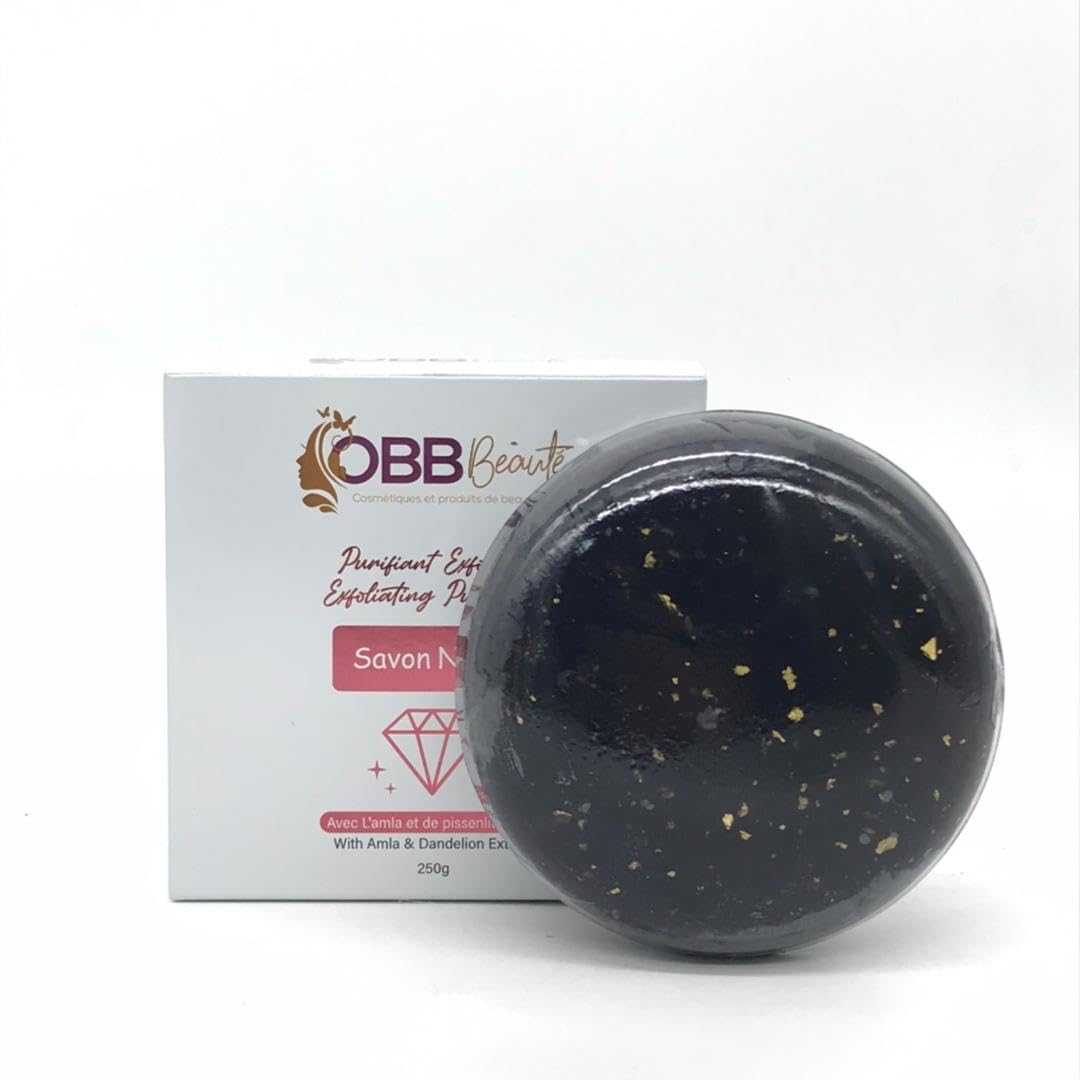 Obbbeaute's Purifying and Exfoliating Black Soap is a versatile skincare product that provides both deep cleansing and gentle exfoliation. Formulated with high-quality, natural ingredients, this soap is designed to remove impurities, dead skin cells, and excess oil, leaving skin feeling soft and smooth. Black soap is renowned for its purifying and detoxifying properties. It is rich in minerals and antioxidants, making it an excellent choice for deep pore cleansing and removing toxins from the skin. The gentle exfoliation it provides helps remove dead skin cells, promoting cell renewal and skin regeneration. To use this soap, simply wet your face or body and work the soap into a lather between your hands. Apply the lather to your skin using gentle, circular motions, paying particular attention to areas prone to blemishes or oil buildup. Rinse thoroughly with clean water and pat dry gently. This soap is suitable for all skin types, but it is especially beneficial for oily, blemish-prone, or clogged-pore skin. It can help reduce the appearance of blackheads, pimples, and enlarged pores, leaving skin feeling fresh and revitalized. Don't hesitate to try Obbbeaute's purifying and exfoliating black soap for clean, smooth, and healthy-looking skin!Savon noir purifiant et exfoliant obbbeaute, 250gDESCRIPTION DU PRODUIT Le savon noir purifiant et exfoliant d'Obbbeaute est un produit de soin de la peau polyvalent qui offre à la fois un nettoyage en profondeur et une exfoliation douce. Formulé avec des ingrédients naturels de haute qualité, ce savon est conçu pour éliminer les impuretés, les cellules mortes et l'excès de sébum, tout en laissant la peau douce et lisse. Le savon noir est réputé pour ses propriétés purifiantes et détoxifiantes. Il est riche en minéraux et en antioxydants, ce qui en fait un excellent choix pour nettoyer les pores en profondeur et éliminer les toxines de la peau. L'exfoliation douce qu'il offre aide à éliminer les cellules mortes de la peau, favorisant ainsi le renouvellement cellulaire et la régénération de la peau. Pour utiliser ce savon, il vous suffit de mouiller votre visage ou votre corps, puis de faire mousser le savon entre vos mains. Appliquez la mousse sur votre peau en effectuant des mouvements circulaires doux, en insistant sur les zones sujettes aux imperfections ou à l'accumulation de sébum. Rincez abondamment à l'eau claire et séchez en tapotant doucement votre peau. Ce savon convient à tous les types de peau, mais il est particulièrement bénéfique pour les peaux grasses, sujettes aux imperfections ou aux pores obstrués. Il peut aider à réduire l'apparence des points noirs, des boutons et des pores dilatés, tout en laissant la peau fraîche et revitalisée. N'hésitez pas à essayer le savon noir purifiant et exfoliant d'Obbbeaute pour une peau propre, lisse et éclatante de santé !
