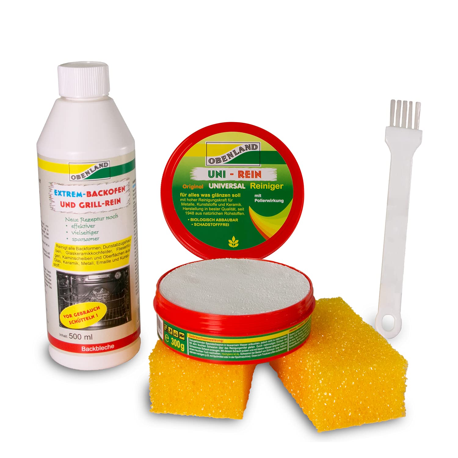 UNI-REIN the original since 1948. The universal cleaner cleans, polishes and preserves in a single pass. UNI-REIN is economical and above all free of harmful substances. Organic stone is gentle on the skin, biodegradable, phosphate-free. Particularly environmentally friendly thanks to its low consumption. In just 4 steps for shine and cleanliness: moisten the special sponge in lukewarm water, but do not wet it. Pass the damp sponge over the cleaning product. Press the sponge several times to create foam. Clean with this foam and rinse with clean water or rub with a damp cloth. High shine. Clean the sponge if necessary to remove dirt or grease residue (e.g. with dishwashing liquid or in the dishwasher). Store the open can to dry. The highly efficient cooking pans and grills work deeply and quickly thanks to selected raw materials that synergistically increase the cleaning power of existing alkalis. Quickly and thoroughly dissolves grease burned in ovens, barbecues, etc. Adheres to vertical surfaces thanks to its viscous adjustment and eliminates the most extreme impurities.Quickly and thoroughly dissolves burnt-on grease in ovens, barbecues, etc. Adheres to vertical surfaces thanks to its viscous setting and removes the most extreme impurities. Extremely effective cooking pans and the barbecue work thoroughly and quickly thanks to selected highly effective raw materials that synergistically increase the cleaning power of existing alkalis. ✓ Areas of application: sink, hob, plastic container, silver cutlery, cromare tableware. Washb, bathtub, toilet, fittings, tiles. Plastic windows, roller shutters Chrome, aluminum, stainless steel, copper, tin, silver, gold, brass, plastic, lacquered wood. ✓ No pollutants - no chemicals. ✓ Economical in consumption. For everything that needs to shine. Cleans, polishes and preserves in one go. UNI-REIN l'original depuis 1948. Le nettoyant universel nettoie, polit et conserve en un seul passage. L'UNI-REIN est économique et surtout exempt de substances nocives. La pierre bio est douce pour la peau, biodégradable, sans phosphate. Particulièrement respectueux de l'environnement grâce à sa faible consommation. En seulement 4 étapes pour la brillance et la propreté : humidifier l'éponge spéciale dans de l'eau tiède, mais ne la mouiller. Passez l'éponge humide sur le produit nettoyant. Appuyez plusieurs fois sur l'éponge pour créer de la mousse. Nettoyer avec cette mousse et rincer à l'eau claire ou frotter avec un chiffon humide. Haute brillance. Nettoyez l'éponge si nécessaire pour éliminer la saleté ou les résidus de graisse (par exemple avec du liquide vaisselle ou au lave-vaisselle). Conserver la boîte ouverte pour sécher. Les poêles de cuisson extrêmement efficaces et les grilles fonctionnent en profondeur et rapidement grâce à des matières premières sélectionnées qui augmentent de manière synergique la puissance de nettoyage des alcalis existants. Dissout rapidement et en profondeur la graisse brûlée dans les fours, barbecues, etc. Adhère aux surfaces verticales grâce à son réglage visqueux et élimine les impuretés les plus extrêmes.Dissout rapidement et en profondeur la graisse brûlée dans les fours, barbecues, etc. Adhère aux surfaces verticales grâce à son réglage visqueux et élimine les impuretés les plus extrêmes. Les poêles de cuisson extrêmement efficaces et le barbecue fonctionnent en profondeur et rapidement grâce à des matières premières sélectionnées hautement efficaces qui augmentent de manière synergique la puissance de nettoyage des alcalis existants. ✓ Domaines d'application : évier, plaque de cuisson, récipient en plastique, couverts en argent, vaisselle en cromare. lavabo, baignoire, toilettes, robinetterie, carrelage. Fenêtres plastiques, volets roulants Chrome, aluminium, acier inoxydable, cuivre, étain, argent, or, laiton, plastique, bois laqué. ✓ Sans polluants – sans produits chimiques. ✓ Économique à la consommation. Pour tout ce qui doit briller. Nettoie, polit et conserve en un seul passage.