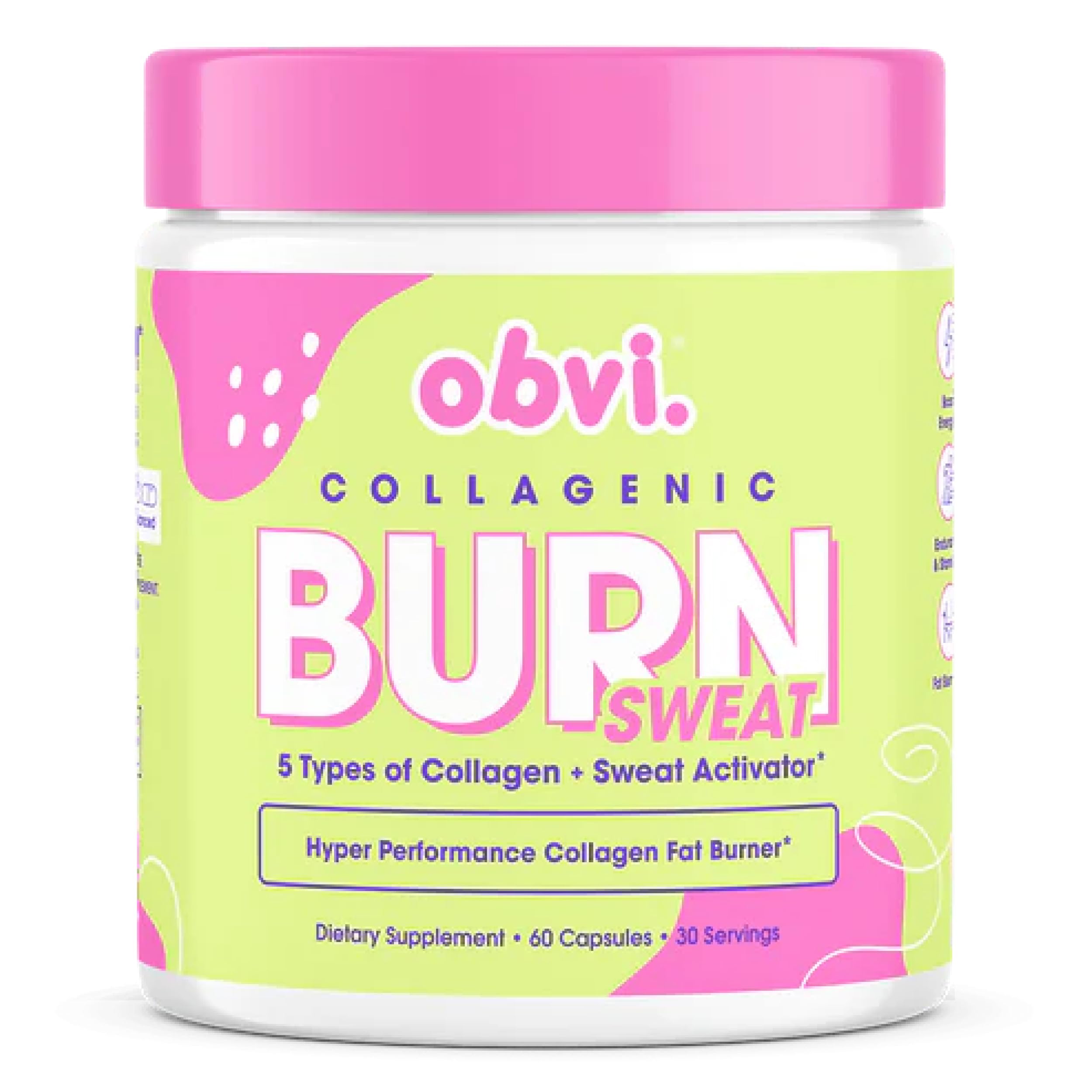 Obvi Collagenic Burn Sweat | Thermogenic Collagen with GBB & Green Tea | Supports Sweat & Metabolism | 5 Types of Collagen for Hair Skin & Joints | 60 Capsules