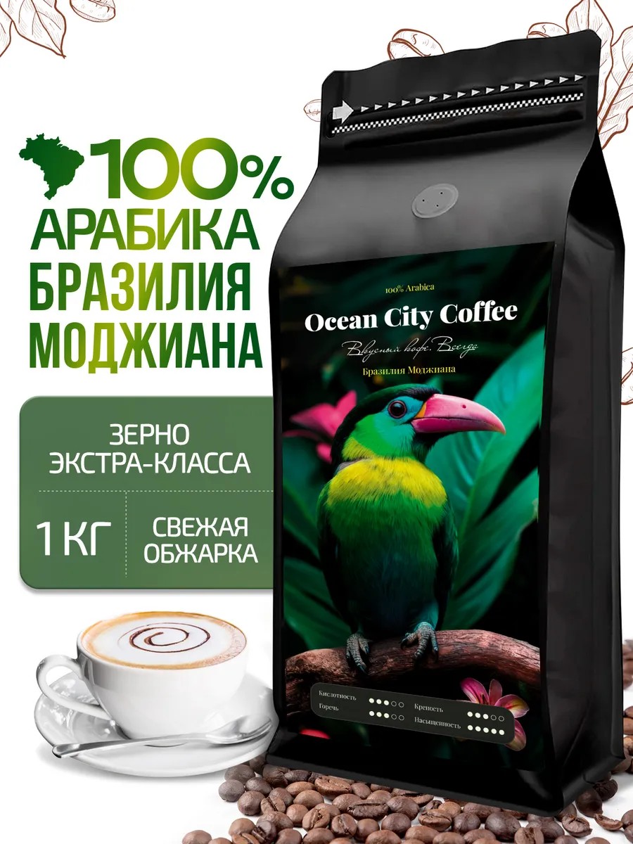 Ocean City Coffee Бразилия Моджиана – это моносорт бразильской арабики из региона Моджиана - одного из трёх основных кофепроизводящих регионов Бразилии. Данный сорт отличается от остального бразильского кофе большей сладостью и более мягким вкусом. Вкус данного кофе наполнен нотами шоколада, цитрусовых, фундука и карамели, букет вкуса комплексный и богатый, а аромат яркий и не пережженный благодаря средней степени обжарки. Идеально подходит для кофемашин, но также подходит и для любых других методов заваривания: в турке, во френч-прессе, в аэропрессе, в чашке. Мы производим обжарку непосредственно перед отгрузкой на склады Wildberries, поэтому Вы получаете всегда свежий продукт. Наш кофе хорошо подходит для приготовления всех видов напитка, в том числе капучино, латте, эспрессо и американо. Часто наш ароматный, качественный и вкусный кофе в зёрнах можно купить по акции со скидкой, для отслеживания цены добавляйте наш бренд в любимые, а товар - в избранное. Утренний аромат этого кофе заставит поторопиться сделать первый глоток нового дня и не потерять бодрости до самого вечера.