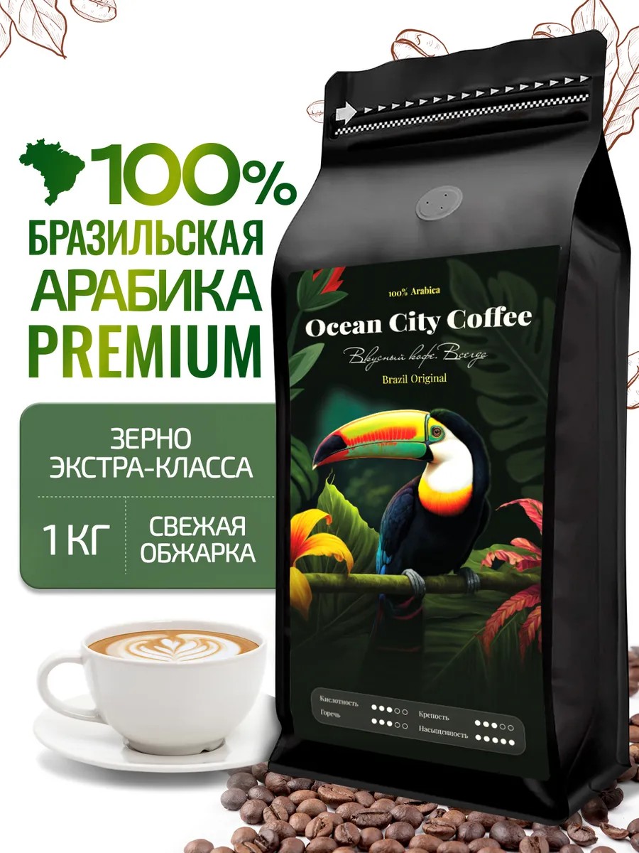Ocean City Coffee Brazil Original is a beloved 100% Brazilian Arabica (Santos and Sul De Minas) freshly roasted, hand-selected and roasted with attention to every detail that influences the flavor of our beloved beverage. By blending the finest Brazilian Arabica varieties, we've achieved the optimal flavor profile that will delight all lovers of high-quality, delicious, and aromatic coffee. Our coffee boasts notes of cocoa, lemon, peanut, and dried fruit, with perfectly balanced bitterness and acidity, and a vibrant, unburnt aroma thanks to a medium roast. Ideal for coffee machines, it also works well with any other brewing method: Turkish coffee, French press, Aeropress, or in a cup. We roast immediately before shipping to Wildberries warehouses, ensuring you always receive a fresh product. Our coffee is perfect for all types of drinks, including cappuccino, latte, espresso, and Americano. Our whole bean coffee is often on sale. To track prices, add our brand to your favorites and this product to your wishlist. The morning aroma of this coffee will make you want to take your first sip of the day and keep you energized until evening.