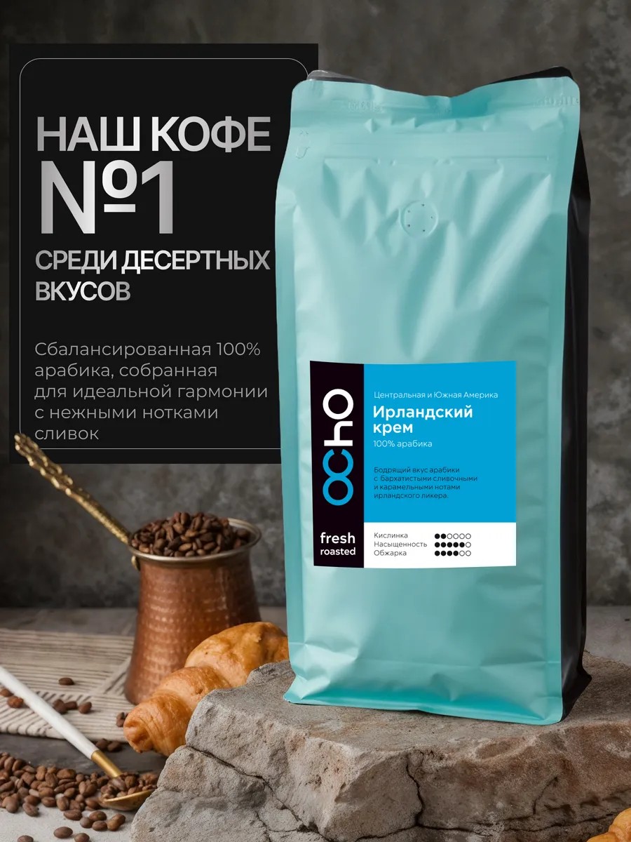 Ароматизированный зерновой кофе с одним из самых популярных ароматов Ирландский крем- для ценителей настоящего качества.