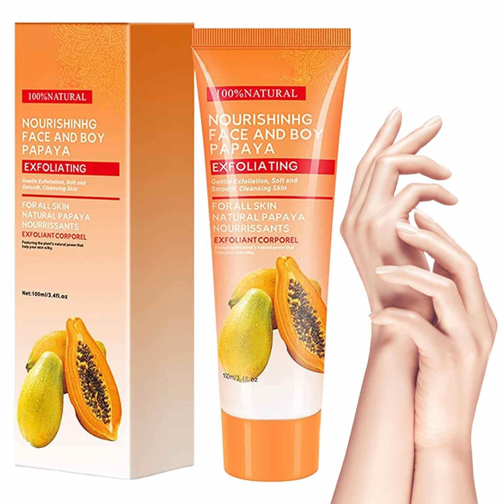 ? Gentle This exfoliating cream gently exfoliates, promoting natural skin cell renewal without irritation. It is made with a natural formula. ? Covers Imperfections Regular use of the papaya exfoliating gel can brighten skin tone, help cover imperfections and pores, and improve the overall appearance of the skin, leaving it more radiant. ? Hydrates Skin This papaya scrub is rich in moisturizing ingredients. It deeply hydrates the skin immediately after use, leaving your newborn's skin as soft as a baby's. ? Softens Cuticles The papaya whitening cream can soften rough cuticles, leaving skin smooth. It also exfoliates dead skin cells, smoothing your skin and leaving it soft and silky. ? Effective Cleansing Papaya skin whitening cream can effectively cleanse dirt, improve skin tone, and leave skin smooth and soft. It helps reduce scars and eliminate dark spots on the skin.