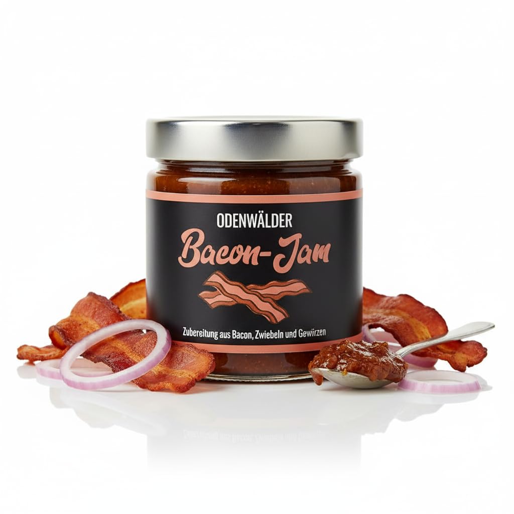 Whether you are at home - the perfect companion for every occasion. Our Bacon Jam brings the unique mix of sweet and savory directly to your grill plate. Made in our factory in Germany, it combines the sweetness of caramelized sugar with the savory touch of crispy bacon. Perfect for barbecue enthusiasts who want to refine their grill dishes with a special touch. Use the bacon jam as a topping on hamburgers, as a dip for meat dishes or as a highlight on sandwiches. Easy to use: Adorable gift: a perfect combination of sweet and savory bacon that enhances your dishes. Versatile: ideal as a topping for burgers, BBQ specialties or as a special ingredient on sandwiches. High-quality in use: made with love and care in our factory, for maximum enjoyment. Perfect for different occasions: the ideal companion for every barbecue party and a highlight on the plate. It's best to enjoy your favorite drink and your favorite beverages. Protect: It's very simple INGREDIENTS bacon, onions, spicesOdenwälder Lebensmittel Bacon Jam, zoete deftige broodbeleg voor grillfans, ideaal voor burgers en BBQ, made in Germany, 200 g Of je nu thuis bent – de perfecte metgezel voor elke gelegenheid. Onze Bacon Jam brengt de unieke mix van zoet en hartig direct op je grillplaat. Gemaakt in onze fabriek in Duitsland, combineert het de zoetheid van gekarameliseerde suiker met de hartige touch van knapperige bacon. Perfect voor barbecueliefhebbers die hun grillgerechten met een bijzondere touch willen verfijnen. Gebruik de bacon Jam als topping op hamburgers, als dip bij vleesgerechten of als hoogtepunt op sandwiches. Gemakkelijk te gebruiken: Schattig cadeau: een perfecte combinatie van zoete en hartige bacon die je gerechten veredelt. Veelzijdig inzetbaar: ideaal als topping voor hamburgers, BBQ-specialiteiten of als speciaal ingrediënt op sandwiches. Hoogwaardig in het gebruik: met liefde en zorg in onze fabriek gemaakt, voor maximaal genot. Perfect voor verschillende gelegenheden: de ideale metgezel voor elk barbecuefeest en een hoogtepunt op het bord. Je kunt het beste genieten van je favoriete drankje en je favoriete dranken. Beschermen: Het is heel eenvoudig INGREDIËNTEN bacon, uien, specerijen