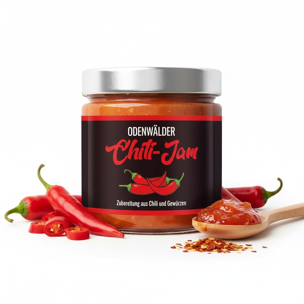 Ideal for children - the perfect choice for every day. Our Chili Jam brings the unique blend of sweetness and fiery pungency directly to your grill plate. Made in our factory in Germany, it combines the sweet notes of caramelized sugar with the spicy pungency of fresh chili peppers. Perfect for anyone who wants to give their barbecue dishes a spicy and sweet touch at the same time. Use the Chili Jam as a topping on burgers, as a dip for meat or as a refined extra on sandwiches. Easy to use: Adorable chili and caramelized sweetness that ennobles your dishes. Versatile: ideal as a topping for hamburgers, BBQ specialties or as a special extra on sandwiches. High-quality in use: made with love and care in our factory, for maximum enjoyment. Perfect for different occasions: the ideal companion for every barbecue party and a highlight on the plate. You can choose the range of your favorite product and your favorite product. Protect: A sweet scratcher INGREDIENTS chili, spicesOdenwälder Lebensmittel Chili Jam, zoet-scherpe broodbeleg voor grillfans, ideaal voor burgers en BBQ, made in Germany, 200 g Ideaal voor kinderen – de perfecte keuze voor elke dag. Onze Chili Jam brengt de unieke mix van zoetheid en vurige scherpte direct op je grillplaat. Gemaakt in onze fabriek in Duitsland, combineert het de zoete noten van gekarameliseerde suiker met de pikante scherpte van verse chilipepers. Perfect voor iedereen die zijn barbecue-gerechten een kruidige en tegelijkertijd zoete touch wil geven. Gebruik de Chili Jam als topping op hamburgers, als dip voor vlees of als geraffineerd extra op sandwiches. Gemakkelijk te gebruiken: Schattige chili en gekarameliseerde zoetheid die je gerechten veredelt. Veelzijdig inzetbaar: ideaal als topping voor hamburgers, BBQ-specialiteiten of als bijzonder extra op sandwiches. Hoogwaardig in het gebruik: met liefde en zorg in onze fabriek gemaakt, voor maximaal genot. Perfect voor verschillende gelegenheden: de ideale metgezel voor elk barbecuefeest en een hoogtepunt op het bord. Je kunt het assortiment van je favoriete product en je favoriete product kiezen. Beschermen: Een zoete krabber INGREDIËNTEN chili, specerijen