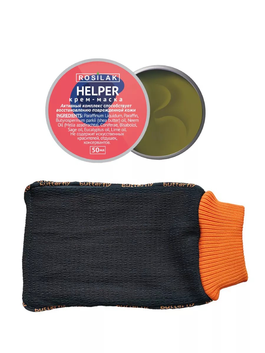 | Комплектация | Маска крем для проблемной и чувствительной кожи, 50 мл; Butterfly - "чудо"-мочалка рукавица (трехфункциональная, средняя 22x12см) |