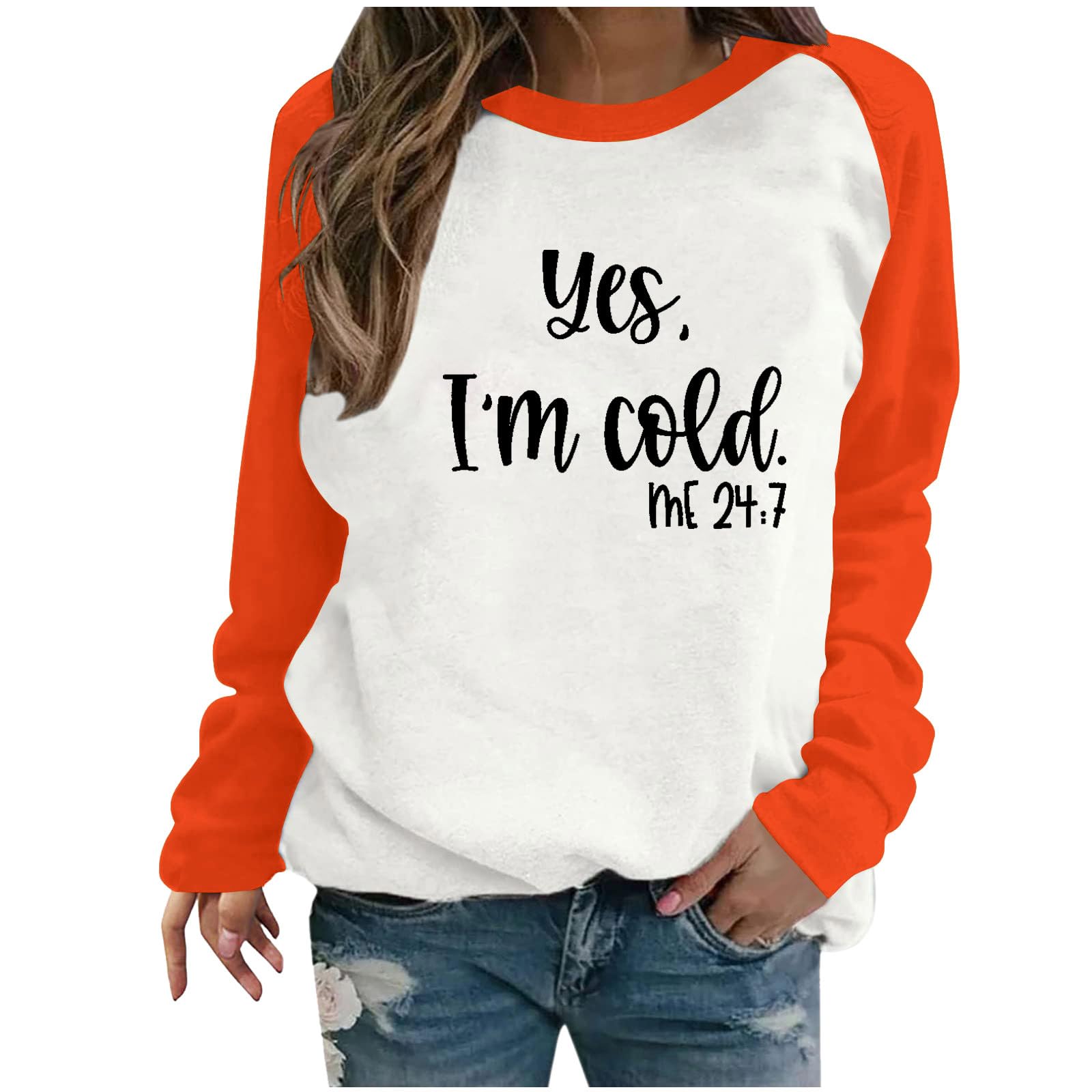 oelaio Womens I'm Yes Cold Me 24:7 Printed Funny Sweatshirt Raglan Long Sleeve Crewneck Letters Casual Loose Pullover Top Orange