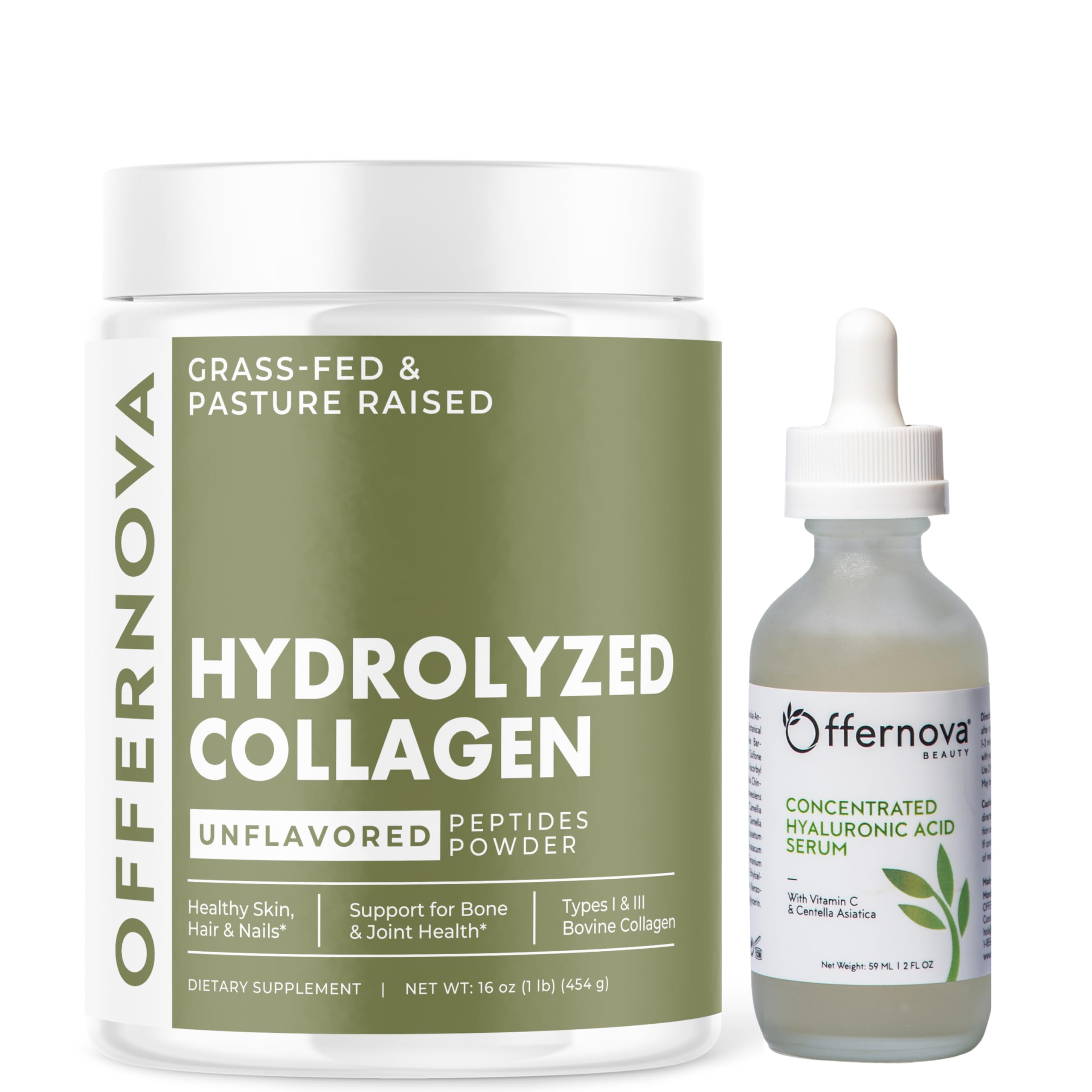 Offernova Collagen & Hyaluronic Acid Bundle Hydrolyzed Collagen Powder + Hydrating Hyaluronic Acid Serum for Radiant Skin Strong Hair & Joints Anti-Aging & Beauty Duo