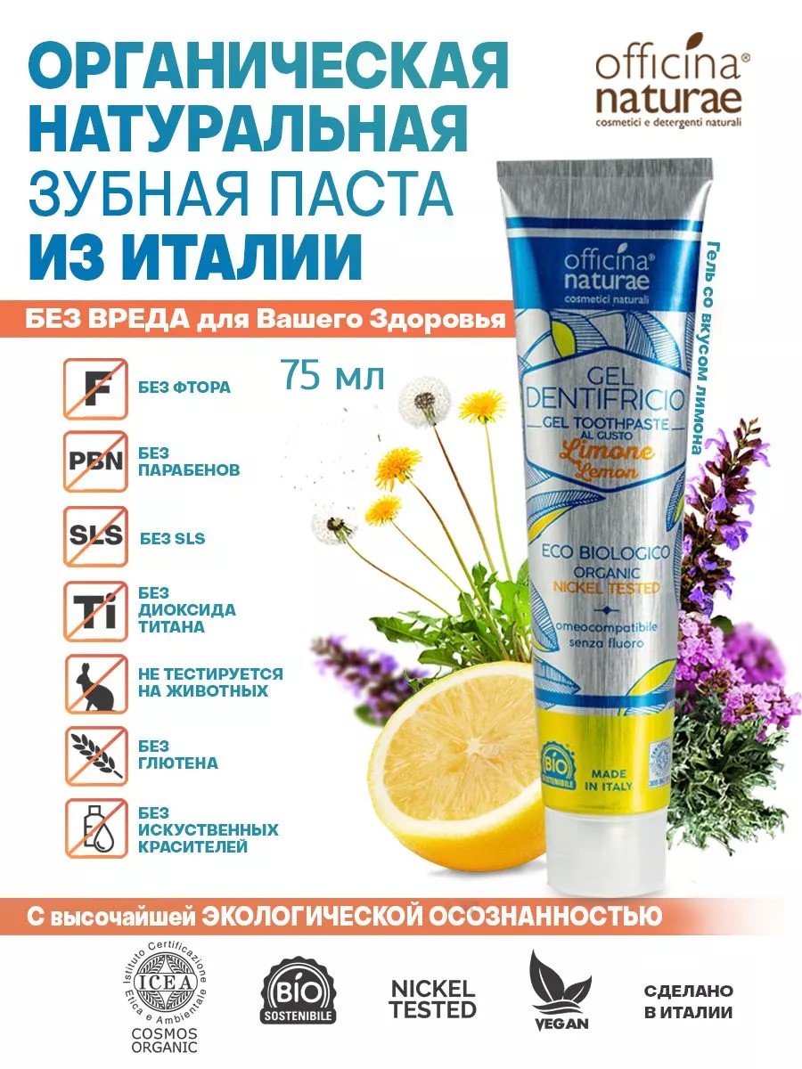 Представляем вашему вниманию натуральную органическую зубную пасту от Officina Naturae 75 мл. Эта зубная паста от кариеса идеально подходит для тех, кто ищет зубную пасту без фтора для взрослых и ценит 100% натуральный состав.Наша зубная паста от зубного камня и зубная паста против кариеса обеспечивают полную защиту вашему рту. С ингредиентами, такими как исландский лишайник и цитрат цинка, вы легко избавитесь от налета и предотвратите образование кариеса.Для наших экологически осознанных покупателей: у нас зубная паста без фтора взрослая и мяты. Она не содержит никаких вредных добавок, красителей и консервантов, что делает ее полностью безопасной для взрослых. Ведь зубная паста взрослая для эмали должна заботиться не только о вашем дыхании, но и о здоровье всего рта.Влюбитесь в свежий цитрусовый вкус нашей лимонной пасты. Если вы ищете альтернативу традиционным пастам, пробуйте органическую зубную пасту от Officina Naturae. Наши продукты проходят строгий контроль качества, не тестируются на животных, и упаковка полностью перерабатывается. Переходите на экологичный уход за полостью рта с нами!И последнее, но не менее важное: наша паста зубная натуральная в алюминиевой тубе, благодаря чему вы можете использовать всю пасту до последнего грамма. А после окончания использования упаковку легко перерабатывать!