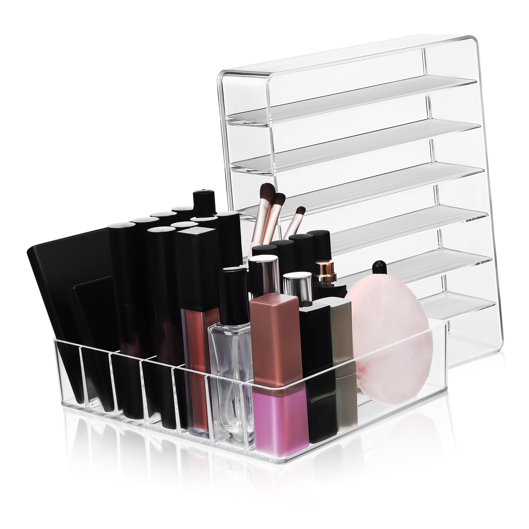 2pcs Vanity Organizer Makeup Storage Countertops Sections Holder for Bathroom Palette Dresser Case