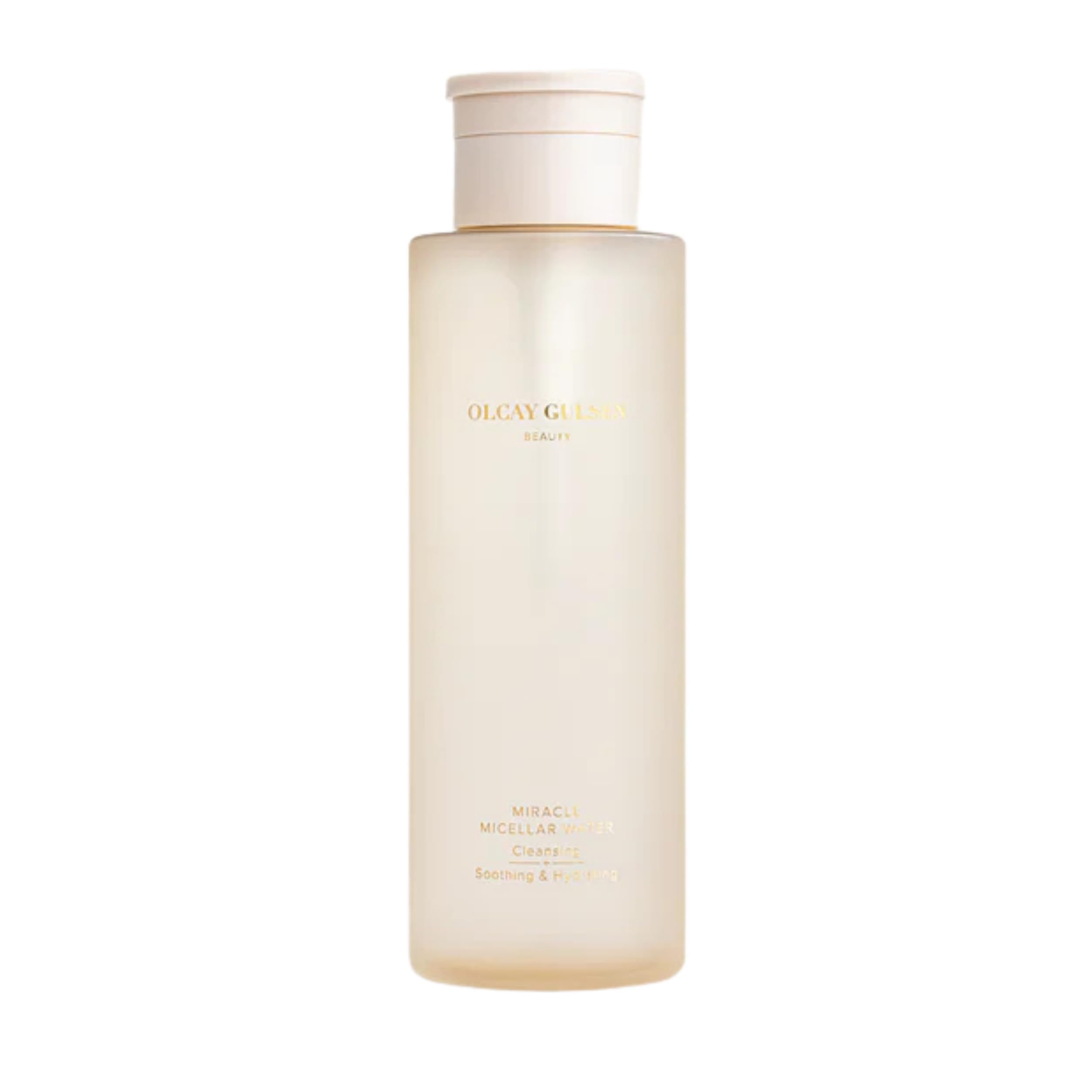 Cleanse, soothe and brighten: in just one refreshing step. The Olcay Gulsen Beauty Miracle Micellar Water is your daily must-have for fresh, clean and radiant skin. The mild micellar cleanser with no-rinse formula effortlessly removes make-up and dirt, while at the same time providing the skin with nourishing active ingredients and reducing a dull complexion. With a powerful blend of probiotics, this micelle cleanser helps regenerate and strengthen the skin. It promotes skin elasticity, has a soothing effect and visibly reduces irregularities such as pigment spots, fine lines and redness. Rose water adds a luxurious touch and has a gentle balancing effect, while plant extracts such as marigold, cucumber, chamomile and rosemary cool, hydrate and refresh, for a nourished, hydrated glow. Whether you just need a quick refreshment or want to thoroughly cleanse your skin after a long day, the Miracle Micellar Water ensures clean, soft and balanced skin, without feeling of tension. SAFETY WARNING For external use only.Vegan and not tested on animals: sustainable beauty with style. Long-lasting formula: radiantly beautiful all day long. Easy to use: perfect for a perfect finish. Nourishing ingredients: Gentle on the skin and very effective. Luxury quality: for a professional result with every application.OGB Miracle Micellar Water 400 ML Reinigen, kalmeren en laten stralen: in slechts één verfrissende stap. De Olcay Gulsen Beauty Miracle Micellar Water is je dagelijkse must-have voor een frisse, schone en stralende huid. De milde micellaire reiniger met no-rinse-formule verwijdert moeiteloos make-up en vuil, terwijl de huid tegelijkertijd van voedende werkzame stoffen wordt voorzien en een vaal werkende teint wordt verminderd. Met een krachtige mix van probiotica helpt deze micelreiniger de huid te regenereren en te versterken. Het bevordert de elasticiteit van de huid, werkt rustgevend en vermindert zichtbaar onregelmatigheden zoals pigmentvlekken, fijne lijntjes en roodheid. Rozenwater geeft een luxe touch en werkt zacht balancerend, terwijl plantenextracten zoals goudsbloem, komkommer, kamille en rozemarijn koelen, hydrateren en verfrissen, voor een verzorgde, gehydrateerde gloed. Of je nu alleen een snelle verfrissing nodig hebt of je huid na een lange dag grondig wilt reinigen, het Miracle Micellar Water zorgt voor een schone, zachte en evenwichtige huid, zonder spanningsgevoel. VEILIGHEIDSWAARSCHUWING Alleen voor uitwendig gebruik.Veganistisch en dierproefvrij: duurzame schoonheid met stijl. Langdurige formule: de hele dag stralend mooi. Eenvoudig te gebruiken: perfect voor een perfecte afwerking. Voedende ingrediënten: Zacht voor de huid en zeer effectief. Luxe kwaliteit: voor een professioneel resultaat bij elke toepassing.