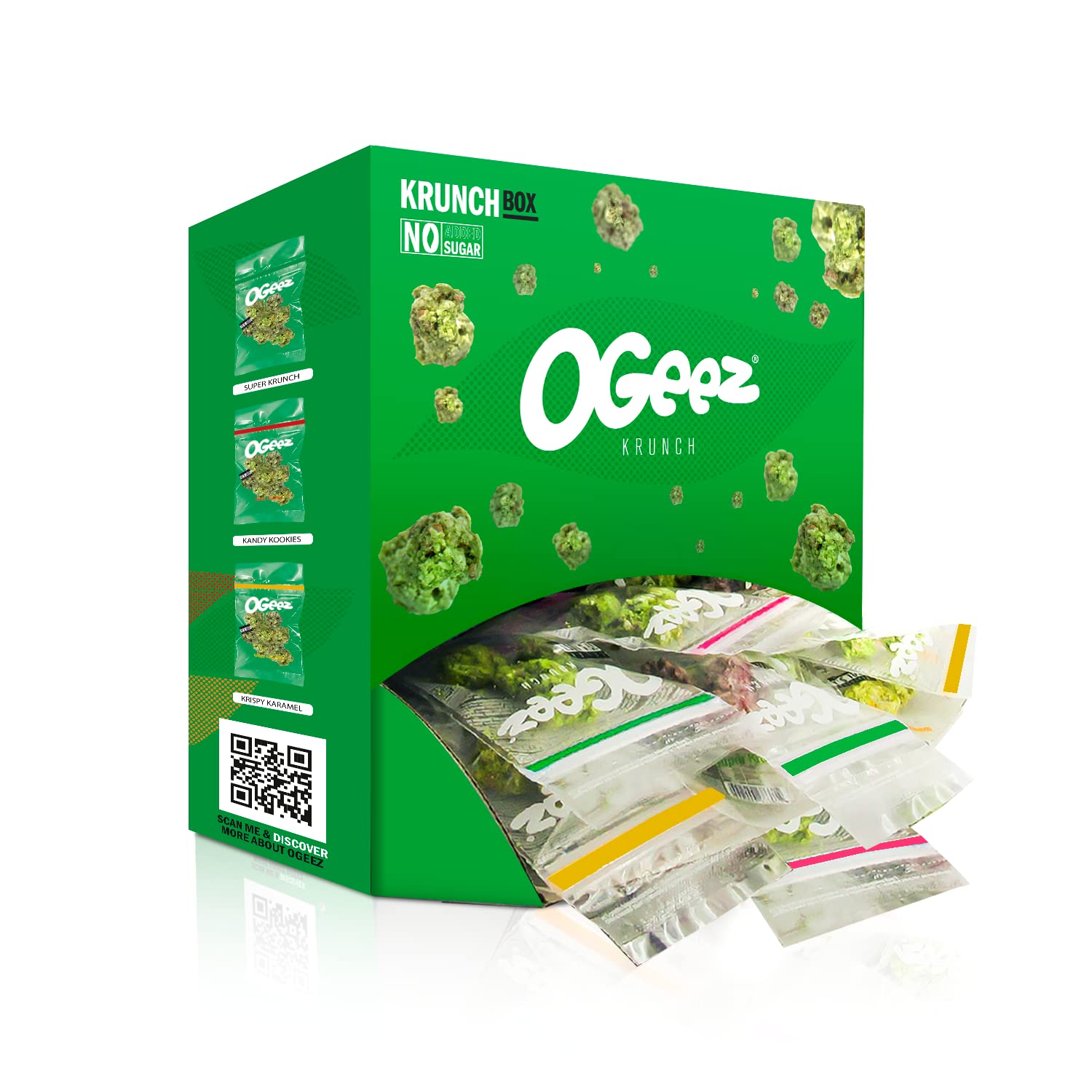 OGeez chocolates not only bring fun to the chocolate industry, but also meet the needs of new consumers, generation z: Portion control: the bite-sized form promotes healthy and conscious consumption Premium, sustainable chocolate for instant pleasure Natural ingredients such as matcha tea and chlorella for a good appetite No added sugars, no additives or preservatives, only natural ingredients OGeez Chocolate diffuses surprising and fun moments and also offers a little personal pleasure: a moment of relaxation and tasting with exotic flavors and textures. OGeez chocolates are available in resealable bags of 10g and 35g for each of the 3 varieties: SUPER KRUNCH a blend of white chocolate, puffed rice, peta-zeta and Matcha Chlorella tea, the healthiest of green teas. Explosively delicious! KANDY KOOKIE Suna combination of puffed rice, white chocolate and Matcha Chlorella with speculoos, irresistible! KRISPY KARAMEL a delicious blend of white chocolate, puffed rice, matcha chlorella tea and caramel pearls that takes you back to your childhood. Allergens: Contains milk, soy and wheat. May contain traces of peanuts INGREDIENTS White chocolate (sugar, cocoa butter, whole milk powder, emulsifier (sunflower lecithin e-322) and natural vanilla flavor), crispy white cereals ((rice flour), sugar, corn flour, dextrose (from corn), salt), cocoa crispy cereals (rice flour, sugar, low-fat cocoa powder, salt), Speculoos (wheat flower, candy sugar, vegetable oils and fats (palm, rapeseed) sugar raw cane, soy flour, invert sugar syrup, baking powder (sodium hydrogen carbonate), cinnamon, nutmeg), soft caramel (sugar, glucose syrup, sunflower oil, butter, invert sugar syrup, sea salt, skimmed milk powder, caramelized sugar, emulsifier (sunflower lecithin), natural flavor, glazing agent (beeswax), sparkling sugar (glucose syrup, sugar, carbon dioxide), chlorella, matcha teaDELIVERY CONTENTS - Original Ogeez "Krunchpack" gift box with 75 bags of 10g each (total 750g) mixed from the 3 new varieties (Super Krunch, Kandy Kookies, Krispy Caramel). CAUTION - Since Ogeez really looks like the real thing in your bags, they can quickly cause problems. ORIGINAL - Surprise your friends with these original candies and trinkets. GIFT IDEA - Chocolate gift, ideal for Christmas, Kings, Easter, Valentine's Day bundles. RELAX, IT'S JUST CHOCOLATE - Prank your friends or family with these chocolate buds, the original choco grass. OGEEZ CHOCOLATE - Funny white chocolate candies with natural matcha tea. Chocolate for men, women, adults. Les chocolats OGeez apportent non seulement du plaisir à l'industrie du chocolat, mais répondent également aux besoins des nouveaux consommateurs, génération z : Contrôle des portions : la forme bouchée favorise une consommation saine et consciente Chocolat premium et durable pour un plaisir instantané Ingrédients naturels tels que le thé matcha et la chlorelle pour un bon appétit Sans sucres ajoutés, sans additifs ni conservateurs, que des ingrédients naturels OGeez Chocolate diffuse des moments surprenants et ludiques et offre aussi un petit plaisir personnel : un moment de détente et de dégustation aux saveurs et textures exotiques. Les chocolats OGeez sont disponibles en sachets refermables de 10g et 35g pour chacune des 3 variétés : SUPER KRUNCH un mélange de chocolat blanc, de riz soufflé, de peta-zeta et de thé Matcha Chlorella, le plus sain des thés verts. Explosivement délicieux ! KANDY KOOKIE Suna combinaison de riz soufflé, chocolat blanc et Matcha Chlorella au spéculoos, irrésistible ! KRISPY KARAMEL un délicieux mélange de chocolat blanc, riz soufflé, thé matcha chlorelle et perles de caramel qui vous replonge en enfance. Allergènes : Contient du lait, du soja et du blé. Peut contenir des traces d'arachides INGRÉDIENTS Chocolat blanc (sucre, beurre de cacao, lait entier en poudre, émulsifiant (lécithine de tournesol e-322) et arôme naturel de vanille), céréales blanches croustillantes ((farine de riz), sucre, farine de maïs, dextrose (de maïs), sel), cacao céréales croustillantes (farine de riz, sucre, cacao maigre en poudre, sel), Spéculoos (fleur de blé, sucre candi, huiles et graisses végétales (palme, colza) sucre de canne brut, farine de soja, sirop de sucre inverti, poudre à lever (carbonate acide de sodium), cannelle, muscade), caramel mou (sucre, sirop de glucose, huile de tournesol, beurre, sirop de sucre inverti, sel marin, lait écrémé en poudre, sucre caramélisé, émulsifiant (lécithine de tournesol), arôme naturel, agent d'enrobage (cire d'abeille), sucre pétillant (sirop de glucose, sucre, dioxyde de carbone), chlorelle, thé matchaCONTENU DE LA LIVRAISON - Coffret cadeau original Ogeez "Krunchpack" avec 75 sachets de 10g chacun (total 750g) mélangés à partir des 3 nouvelles variétés (Super Krunch, Kandy Kookies, Krispy Caramel). ATTENTION - Étant donné que Ogeez ressemble vraiment à la vraie chose dans vos sacs, ils peuvent rapidement causer des problèmes. ORIGINAL - Surprenez vos amis avec ces bonbons et bibelots originaux. IDÉE CADEAU- Cadeau chocolat, idéal pour les lots de Noël, Rois, Pâques, Saint Valentin. DÉTENDEZ-VOUS, C'EST JUSTE DU CHOCOLAT - Faites des blagues à vos amis ou à votre famille avec ces bourgeons de chocolat, l'herbe à choco originale. OGEEZ CHOCOLATE - Bonbons amusants au chocolat blanc avec du thé matcha naturel. Chocolat pour hommes, femmes, adultes.