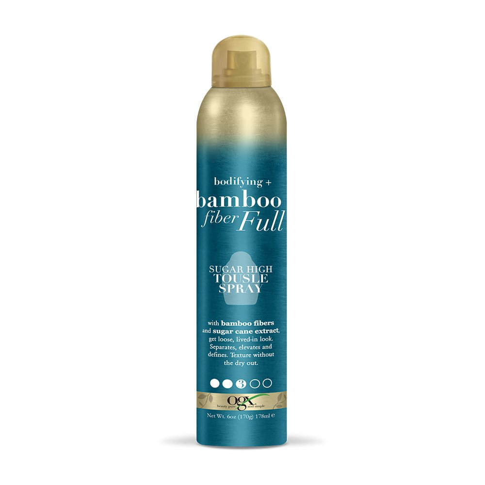 Fiber Full Sugar High Tousle Spray infused with bamboo fibgers and sugar cane extract that helps create texture without drying out hair. Get the best out of straight hair, curly hair, short hair, colored hair, and all hair types and textures with this hair spray with a strong, 24 hour hold that helps volumize, lift and define your tresses. It's time to hair flip your way to healthy hair and a sleek look with our sugar high tousle hairspray.REAL QUALITY, REAL BEAUTY: Unattainable looks don't inspire us but originality does. OGX hair & skin care product collections are here to help you look your best! We’re beauty, pure & simple. WHAT HAIR WANTS: Whether you need quenching moisture for curly hair, protection for color treated hair, blowout cream or matte pomade, OGX hair care products are designed to bring out your best. BEAUTY PURE & SIMPLE: OGX products are inspired by nature. We don’t try to make hair look “perfect” because we’d rather make hair look fuller, smoother, curlier, or bouncier & smell irresistible. BAMBOO