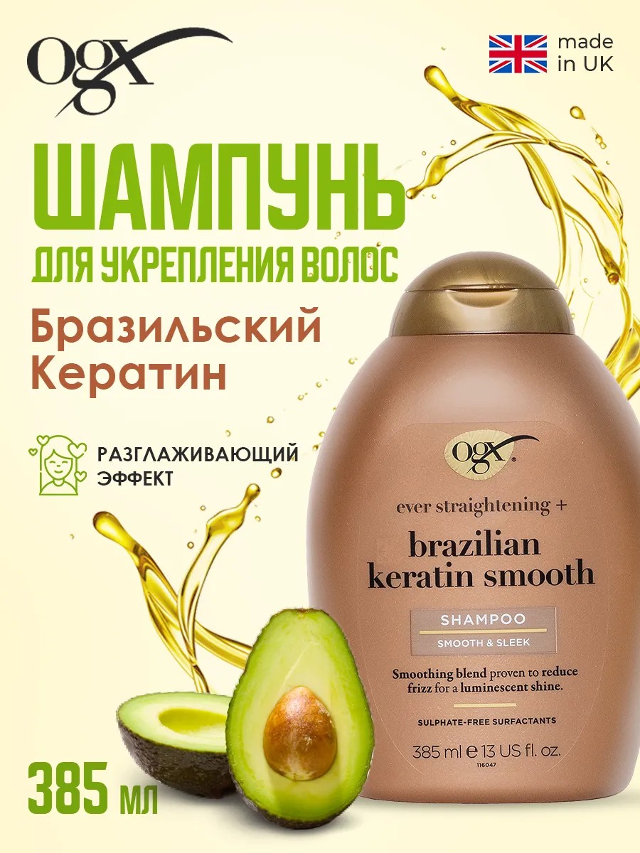 OGX Шампунь разглаживающий для укрепления волос 385 мл
