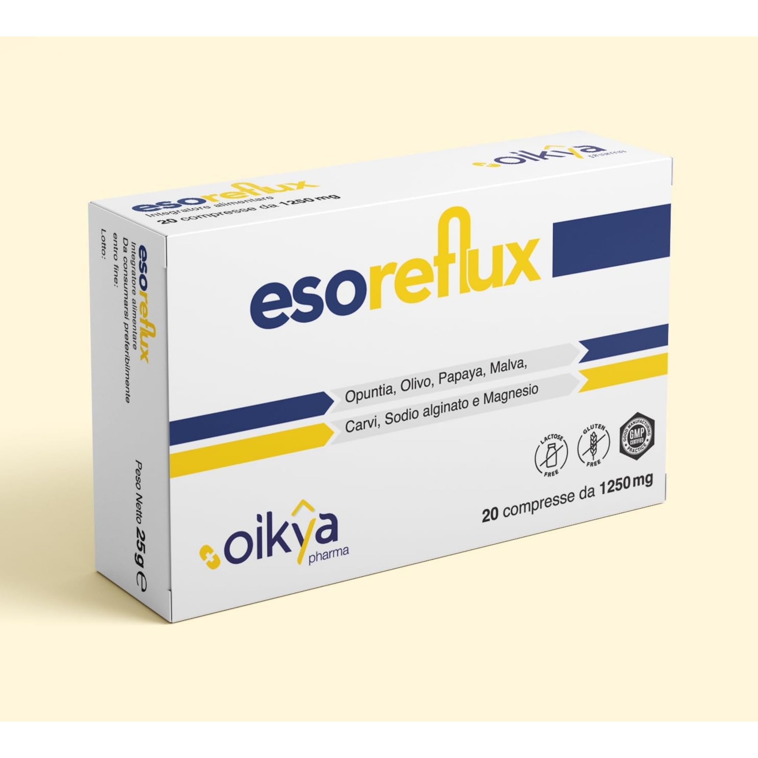 : : Discover Esoreflux, the natural supplement designed to provide effective relief from the discomfort of acid reflux and heartburn. If you suffer from heartburn and reflux, you know how unpleasant and painful they can be. Our unique formula has been specially developed to soothe and promote healthy digestion. Esoreflux's key ingredients include Mucosave, Sodium Alginate, Papaya, Magnesium Hydroxide, Mallow, and Caraway, selected for their beneficial properties in soothing heartburn and reflux. Mucosave protects the stomach lining, reducing irritation and promoting healing. Sodium alginate creates a protective barrier in the esophagus, preventing stomach acid from flowing back up. Papaya and magnesium hydroxide help neutralize excess acid, relieving heartburn and reflux. Mallow and caraway are known for their soothing and anti-inflammatory properties, which can relieve irritation and burning sensations. Each box of Esoreflux contains 20 tablets of 125 ml. It's easy to incorporate into your daily routine and will help you wake up without reflux discomfort. Choose Esoreflux as a natural and safe solution for your gastrointestinal well-being. Ingredients: Mucosave, sodium alginate, papaya, magnesium hydroxide, mallow, and caraway Ingredients: Mucosave, sodium alginate, papaya, magnesium hydroxide, mallow, and caraway INGREDIENTS Mucosave, sodium alginate, papaya, magnesium hydroxide, mallow, and caraway : : Discover Esoreflux, the natural supplement designed to provide effective relief from the discomfort of acid reflux and heartburn. If you suffer from heartburn and reflux, you know how unpleasant and painful they can be. Our unique formula has been specially developed to soothe and promote healthy digestion. Esoreflux's key ingredients include Mucosave, Sodium Alginate, Papaya, Magnesium Hydroxide, Mallow, and Caraway, selected for their beneficial properties in soothing heartburn and reflux. Mucosave protects the stomach lining, reducing irritation and promoting healing. Sodium alginate creates a protective barrier in the esophagus, preventing stomach acid from flowing back up. Papaya and magnesium hydroxide help neutralize excess acid, relieving heartburn and reflux. Mallow and caraway are known for their soothing and anti-inflammatory properties, which can relieve irritation and burning sensations. Each box of Esoreflux contains 20 tablets of 125 ml. It's easy to incorporate into your daily routine and will help you wake up without reflux discomfort. Choose Esoreflux as a natural and safe solution for your gastrointestinal well-being. Ingredients: Mucosave, sodium alginate, papaya, magnesium hydroxide, mallow, and caraway Ingredients: Mucosave, sodium alginate, papaya, magnesium hydroxide, mallow, and caraway INGREDIENTS Mucosave, sodium alginate, papaya, magnesium hydroxide, mallow, and carawayOikyaPharma Esoreflux Gastroprotecteur Estomac naturel Complément naturel Brûlures d'estomac Haute dose acidité d'estomac Comprimés de 1250mgDESCRIPTION DU PRODUIT DESCRIPTION DU PRODUIT Description produit : Description produit : Découvrez Esoreflux, le complément naturel conçu pour offrir un soulagement efficace des inconforts du reflux gastrique et de l'acidité. Si vous souffrez de brûlures d'estomac et de reflux, vous savez à quel point ils peuvent être désagréables et douloureux. Notre formule unique a été spécialement développée pour soulager et favoriser une digestion saine. Les ingrédients clés d'Esoreflux incluent Mucosave, Alginate de sodium, Papaye, Hydroxyde de magnésium, Mauve et Carvi, sélectionnés pour leurs propriétés bénéfiques pour apaiser les brûlures d'estomac et le reflux. Le mucosave protège la muqueuse gastrique, réduisant l'irritation et favorisant la guérison. Le sodium alginate crée une barrière protectrice dans l'œsophage, empêchant la montée des acides de l'estomac. La papaye et l'hydroxyde de magnésium aident à neutraliser l'excès d'acide, soulageant les brûlures d'estomac et le reflux. La mauve et le Carvi sont connus pour leurs propriétés apaisantes et anti-inflammatoires, qui peuvent soulager l'irritation et la sensation de brûlure. Chaque boîte d'Esoreflux contient 20 comprimés de 1250 ml. Il est facile à intégrer dans votre routine quotidienne et vous aidera à vous réveiller sans gêne de reflux. Choisissez Esoreflux comme solution naturelle et sûre pour votre bien-être gastro-intestinal. Ingrédients Mucosave, alginate de sodium, papaye, hydroxyde de magnésium, mauve et carvi Ingrédients Mucosave, alginate de sodium, papaye, hydroxyde de magnésium, mauve et carvi INGRÉDIENTS Mucosave, alginate de sodium, papaye, hydroxyde de magnésium, mauve et carviAchetez maintenant les comprimés Oikya Pharma pour un bien-être gastro-intestinal optimal. Profitez des effets protecteurs et anti-inflammatoires de ce complément pour assurer la santé de votre estomac et de votre œsophage. Traitement complet pour le reflux sans gluten et lactose. Le traitement avec ces comprimés antiacide biokétase est recommandé à la fois pour l'action immédiate sur le reflux gastrique et pour la protection à long terme de l'appareil digestif. Le dispositif monodose permet de prendre le complément à tout moment de la journée. Grâce à la présence de bicarbonate, de magnésium et d'émollients, ce complément Oikya Pharma agit comme un gastro-protecteur efficace, réduisant l'inflammation gastro-intestinale et protège la muqueuse gastrique. Idéal pour les personnes souffrant de gastrite et de brûlures. Les comprimés à mâcher sont faciles à prendre et aident à protéger l'estomac des effets néfastes de l'acidité gastrique. La formulation à base d'ingrédients gastroprotecteurs favorise une bonne digestion et réduit le gonflement abdominal. Ce complément Oikya Pharma est spécialement formulé pour le traitement des symptômes du reflux gastro-oesophagien, protégeant l'appareil gastro-intestinal et réduisant les b