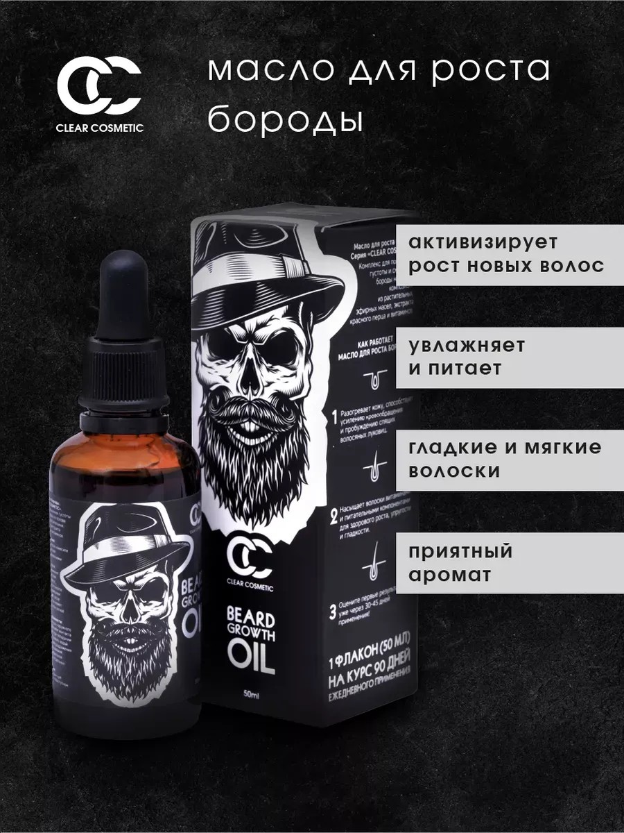 Масло Clear Cosmetic это натуральный и эффективный комплекс из природных компонентов, способных простимулировать собственные силы организма на активный рост бороды. В составе нет гормональных добавок, лекарственных средств и других неполезных вещей, только натуральные масла, витамины и микроэлементы. Разработанное командой трихологов Clear Cosmetic масло сочетает в себе два основных направления работы разогревает и питает. В состав масла входят жгучие компоненты масло красного жгучего перца, эфирные масла имбиря и корицы. Активные действующие вещества этих масел раздражают нервные окончания кожи, стимулируя приток крови к ней и волосяным луковицам. Благодаря этому усиливается прилив питательных веществ, ускоряется рост имеющихся волос, пробуждаются спящие волосяные луковицы. Питательные компоненты лучше усваиваются кожей, волосы становятся крепче. Масло (для роста бороды и волос) не содержит синоксидин . Подходит против выпадения волос и для бороды и усов. Не является лекарственным средством!