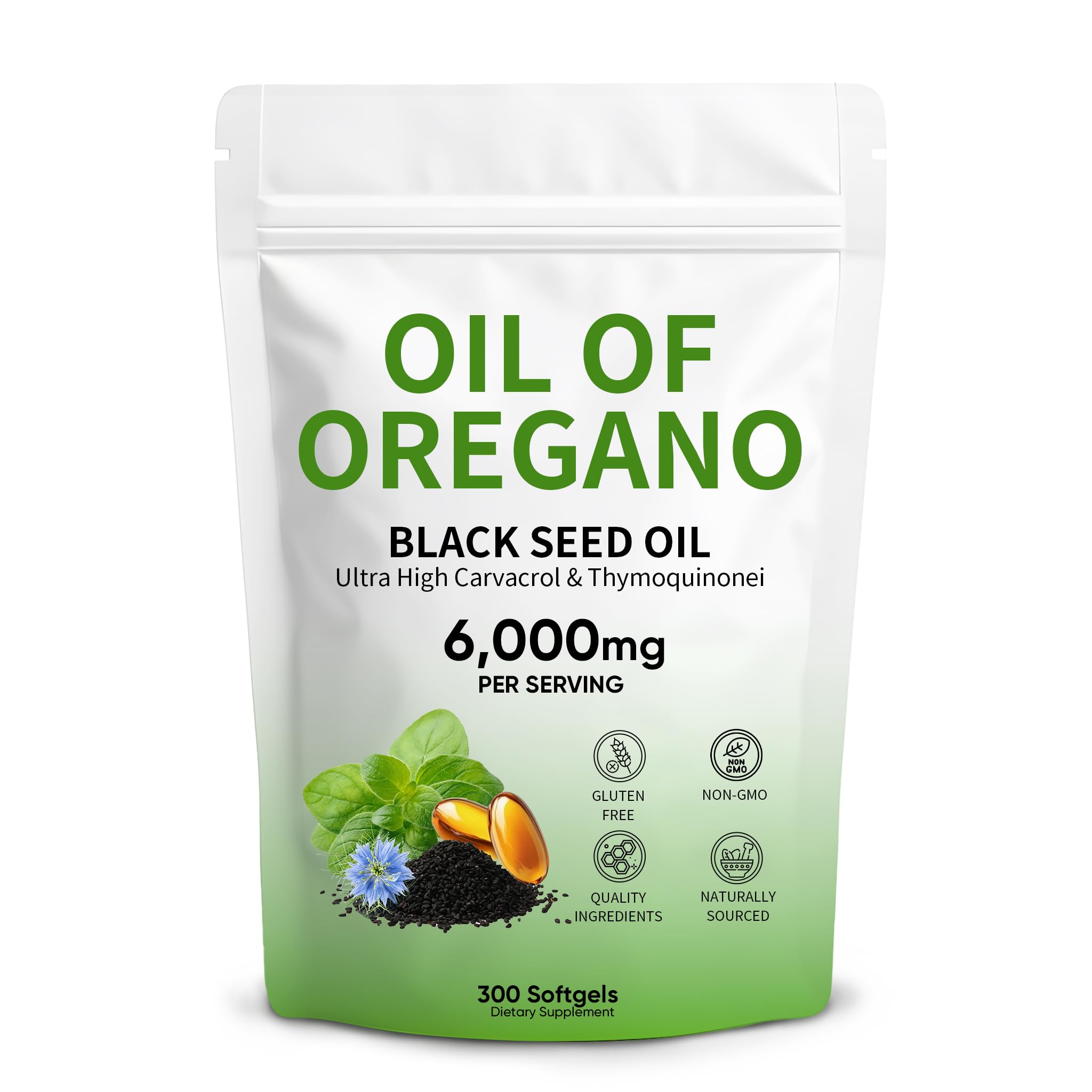 Oil of Oregano 6 000mg with Black Seed Oil Oregano Oil Capsules Organic with Carvacrol & Thymoquinone 2-in-1 Formula for Immune Support & Digestive Health Non-GMO & Gluten Free 300 Softgels (1)