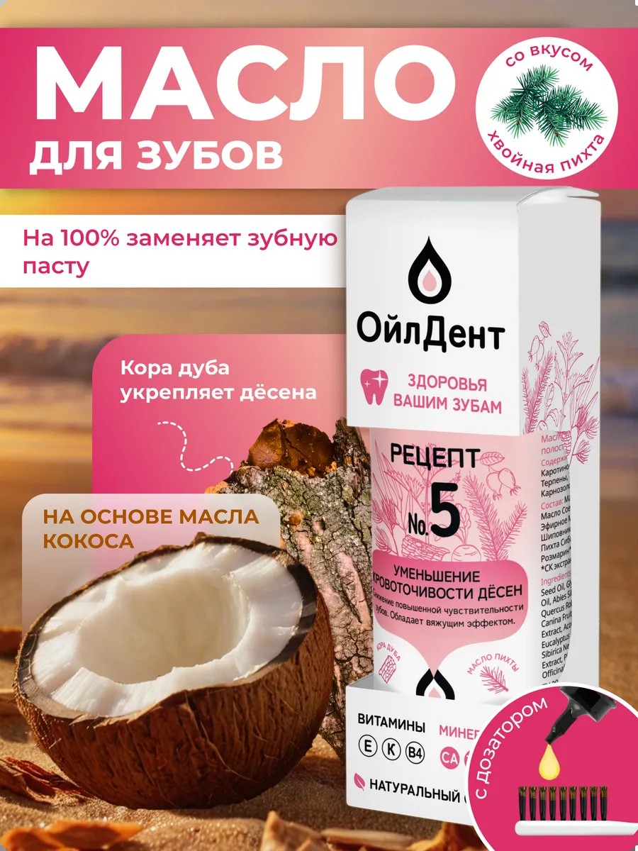 | Полное наименование товара | ОйлДент Рецепт №5 Уменьшение кровоточивости десен |