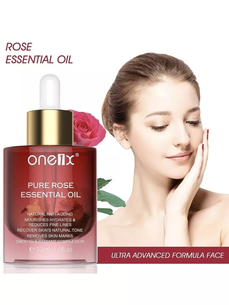 The first product is Rose Facial Oil, an anti-aging treatment with rose extract and natural vitamins.