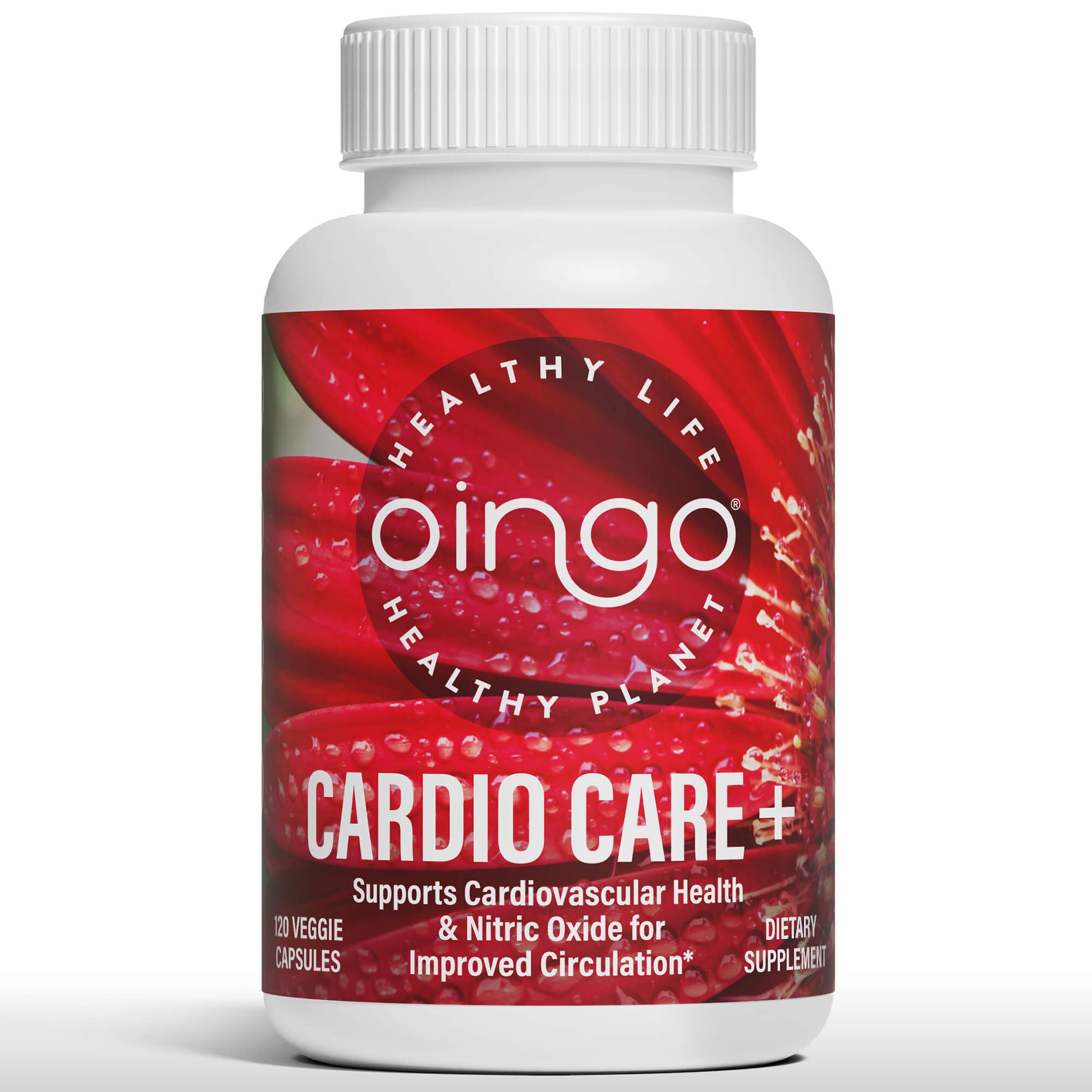 FOR YOUR HEART AND MORE: Oingo Cardio Care combines beet root extract, vitamin B, chelated selenium, taurine, and grape seed extract in one balanced formula designed to support your overall wellness. Each ingredient is carefully selected to work together, providing antioxidant support and helping you feel your best. THE NITRIC OXIDE CONNECTION: In the late 1990s, research highlighted the role of nitric oxide in maintaining healthy blood flow. Nitric oxide helps support circulation by assisting blood vessels in relaxing and delivering oxygen and nutrients throughout the body. With age, natural nitric oxide production declines. Oingo Cardio Care offers nutritional support to help maintain healthy circulation. THE POWER OF BEETS: Beetroot is a natural source of nitrates and phytonutrients. Studies suggest that beetroot can support endurance, promote circulation, and aid in post-workout recovery. Combined with vitamins and antioxidants, beetroot makes Cardio Care a smart addition to an active lifestyle. GRAPE SEED: SMALL BUT MIGHTY: Grape seed extract contains OPCs (oligomeric proanthocyanidins), a type of plant compound known for antioxidant activity. It helps protect against oxidative stress, supports healthy circulation, and contributes to overall vitality. WELLNESS WITH A PURPOSE: At Oingo, we believe in quality, sustainability, and balance. Cardio Care is formulated with care, blending tradition and science to support your wellness journey while respecting the planet.Statements regarding dietary supplements have not been evaluated by the FDA and are not intended to diagnose, treat, cure, or prevent any disease or health condition. HEALTHY LIVING ON A HEALTHY PLANET: At Oingo, we believe the healthiest way to live is on a healthy planet. Inspired by the wisdom of generations, our approach combines wellness, quality assurance, and sustainability at the core of every formula. By choosing Oingo, you support a future where personal wellness and planetary care work together in harmony. . THE ANTIOXIDANT POWERHOUSE: Grape seed extract (GSE) is rich in oligomeric proanthocyanidins (OPCs), plant compounds known for their powerful antioxidant activity. These polyphenols help protect against oxidative stress and support overall wellness. GSE also promotes healthy circulation, helps maintain strong blood vessels, and contributes to vitality and energy balance. As an added benefit, grape seed extract provides support for eye health and cognitive function. . HEART LOVES BEETS: Red beet is naturally rich in nitrates, which the body can convert into nitric oxide to help support circulation and overall vitality. Beetroot powder is often used to promote healthy blood flow, enhance oxygen delivery during exercise, and support endurance. Many people also add beet supplements to their pre-workout routine as a natural way to help fuel performance and recovery. . THE NOBEL PRIZE DISCOVERY: In 1998, researchers were awarded the Nobel Prize for their work on nitric oxide (NO) as a key signaling molecule in the cardiovascular system. Nitric oxide helps support healthy circulation by assisting blood vessels in relaxing, allowing oxygen and nutrients to move throughout the body. With age, natural nitric oxide production declines. Oingo Cardio Care provides nutritional support to help maintain nitric oxide levels and promote overall wellness. . YOUR HEART'S BEST FRIEND: Oingo Cardio Care combines essential vitamins and botanicals to support overall wellness. This formula includes heart-friendly nutrients like vitamin B1, B2, B6, and methylated folate to help maintain healthy blood cells, blood vessels, and nerve function. Taurine provides added support for heart and energy balance, while beetroot powder helps promote nitric oxide production for healthy circulation. Grape seed extract offers antioxidant support, helping to protect against oxidative stress and free radicals. .