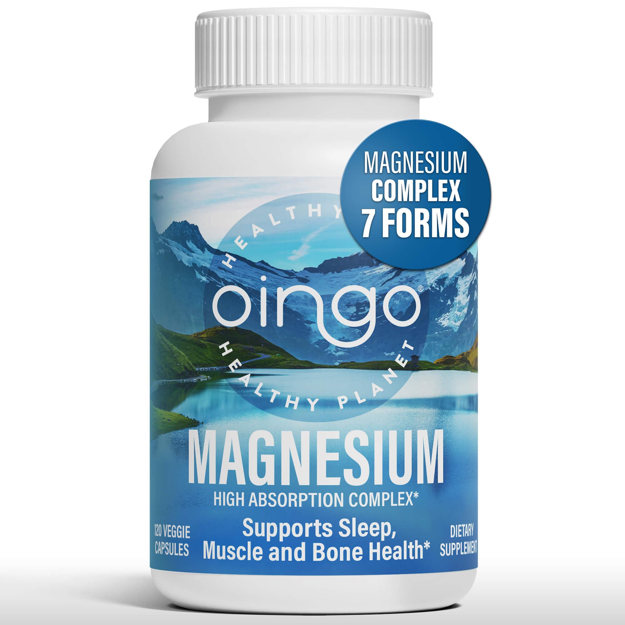MEET MAGNESIUM, THE MINERAL THAT MAINTAINS LIFE! Magnesium is one of the essential minerals with many functions in the human body, including a structural role in bones, cell membranes and chromosomes. It is needed for more than 300 metabolic reactions, for the synthesis of nucleic acids, proteins, carbs, lipids, for the transportation of potassium and calcium across cell membranes. Nerve impulse conduction, muscle contraction, cell signaling, and cell migration also depend on magnesium. ✓ YOUR HEART'S FRIEND - Magnesium activates the neuromuscular contractions, the cardiac function, regulates the acid-alkaline balance in the body. ✓ENERGY SUPPORT - Magnesium helps your body turn food into energy, reduces muscle fatigue and improves recovery. It also helps you get muscle cramps relief and may help with restless legs. ✓ MAGNESIUM FOR SLEEP - Studies have shown that magnesium is a natural muscle relaxant, neuro optimizer and anti-anxiety sleep supplement that provides restful sleep without making you dependent on sleeping pills. ✓ BONE STRENGTH - Magnesium regulates essential elements like calcium, phosphorus, sodium, potassium to support bone mass, density, and overall bone health. ✓ MAGNESIUM FOR CONSTIPATION? Take two at night and expect fast, gentle relief by morning. OINGO MAGNESIUM COMPLEX - High absorption magnesium blend - Non-GMO - Gluten free - Magnesium Stearate Free - No artificial flavors and binders - 120 magnesium caps, third-party lab tested for safety, quality, and purity Oingo is more than a supplement brand. It's a movement towards a healthier lifestyle and a healthier planet. Join the Oingo community, where every capsule is a step towards a healthier, more vibrant life. Feel the difference with nature's finest ingredients, ensuring you stay at your best no matter your age or lifestyle. Let your journey to wellness with Oingo be as inspiring as you are!Statements regarding dietary supplements have not been evaluated by the FDA and are not intended to diagnose, treat, cure, or prevent any disease or health condition. HEALTHY LIVING ON A HEALTHY PLANET: Admiring the Native American proverb "We don't inherit the Earth from our ancestors, we borrow it from our children.", we at Oingo believe that the healthiest way to live is on a healthy planet. Holistic approach to wellness, quality assurance and sustainability - these are the core features of every Oingo dietary supplement. By choosing Oingo, you help us create a future where personal wellness and planetary health are in harmony. Join Our Movement!. TAKE ONE AND GO TO BED: Do you count sheep every night? Magnesium regulates melatonin and GABA for a healthy stress response, calm mood, and better sleep. Take just one of our magnesium capsules and get sleep and relaxation support. Unlike some other anxiety relief items, forming dependence and causing dizziness, our non-habit forming magnesium 7 complex prolongs sleep and makes you wake up fresh and rested. Recent research shows that using magnesium for migraines is reasonable. . FOOD FOR EVERY CELL, A FRIEND OF YOUR HEART: As a cofactor in hundreds of enzyme reactions, magnesium, especially magnesium malate, helps convert food into cellular energy. Magnesium is essential for the function of mitochondria and for the DNA and RNA synthesis. Magnesium helps to maintain a healthy heart rhythm, supports healthy cholesterol levels and healthy blood vessels. Magnesium chelate supplements provide blood pressure support and promote overall cardiovascular health. . EXCELLENT NERVE MUSCLE RELAXER: Magnesium supports muscle and nerve health. It helps relieve tension and discomfort for physical exercise performance, recovery, and relaxation. Research shows that chelated magnesium glycinate and citrate is a powerful combination that promotes cramp defense and relief from restless leg syndrome. Magnesium supplements may improve exercise physical performance and help with sore muscle relief and post workout recovery . 7 MAGNESIUM FORMS IN SYNERGY: Our magnesium complex supplement combines seven forms, including magnesium glycinate, magnesium citrate, magnesium malate, magnesium oxide, magnesium taurate, magnesium ascorbate and amino acid chelate to provide elemental magnesium for over 300 enzyme processes. Why magnesium 7 in 1 complex? Because some forms give effective cramp relief, constipation relief, stress and anxiety relief, others boost energy and metabolism, all forms promote bone health and heart health .