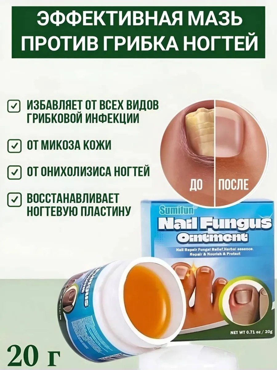Средство от грибка предназначено для лечения ногтей, онихомикоза, ухода за кожей стоп и рук. Эффективное и безопасное китайское средство против грибка ногтей помогает справиться с проявлением онихолизиса. Помогает предотвратить инфекцию, избавиться от трещин на ногтях и околоногтевых валиках. Используется как для ногтей, так и для кутикулы. Используется для ухода за потрескавшимися, грубыми, хрупкими ногтями, используется при педикюре. Средство от грибка увлажняет ногтевую пластину и ускоряет процессы ее восстановления. Активные вещества восстанавливающей мази от грибка ногтей проникают в глубокие слои ногтя и ногтевого ложа, оказывая эффективное обеззараживающее действие и защищает от повторного появления грибка на ногтях, эффективно справляется с проявлением грибка на ногах на любой стадии. Отлично подходит для ухода за ногтями в домашних условиях.
