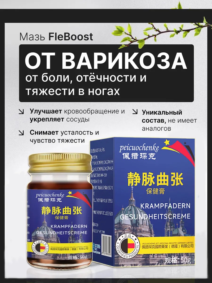 Натуральный крем при варикозе - создан на базе растительных ингредиентов, которые имеют доказанную эффективность при лечении варикозного расширения вен. Его природная формула не содержит вредных химических веществ и побочных эффектов, поэтому подходит даже беременным. Он идеально сочетает в себе косметику и медицину, его составляющая часть воздействует не только внешне, но и глубоко проникает в сосуды, очищает их, стимулирует кровоток, удаляет застои крови и не допускает осложнений.