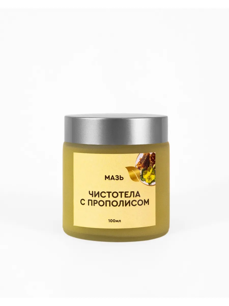 Celandine + Propolis Ointment. Celandine and Propolis Ointment: A Natural Solution for Comprehensive Skin Care. This ointment, made with celandine and propolis, effectively addresses a wide range of skin problems, making it an indispensable addition to any home medicine cabinet. Its natural ingredients help with papillomas, warts, eczema, dermatitis, diathesis, as well as acne and pimples. Thanks to their antiseptic and anti-inflammatory properties, celandine and propolis act on the deep layers of the skin, helping to restore its health and appearance. Key actions of the ointment: Removal of papillomas and warts: Powerful alkaloids such as chelidonine and sanguinarine target viral and bacterial infections, promoting the safe removal of skin growths and preventing their recurrence. Eczema and Dermatitis Relief: Natural ingredients relieve inflammation, itching, and irritation typical of eczema and dermatitis. The ointment soothes the skin, eliminating discomfort and maintaining its hydration. Wound Healing and Infection Prevention: Propolis in the ointment helps cleanse and protect the skin from infections, accelerating tissue regeneration and preventing complications such as fungal infections and scabies. Acne and Blemish Support: Celandine and propolis actively fight acne-causing bacteria. They regulate sebum production, unclog pores, and reduce inflammation, resulting in clearer, healthier skin. Support for Other Skin Conditions: Thanks to antioxidants and organic acids, celandine provides support even for more complex conditions such as psoriasis, seborrhea, and allergic dermatitis, helping to eliminate irritation and improve skin texture. Benefits that make this ointment indispensable: Natural composition and safety: Suitable for all skin types and for regular use. Multifunctional: Effectively solves various skin problems, acting as an anti-inflammatory and healing agent. Highly effective in combination therapy: Suitable for the prevention and treatment of skin defects. This ointment will become your reliable assistant in skin care! Indispensable for those looking for an effective remedy for papillomas and warts, need an ointment for acne healing, or seek natural care for dermatitis and eczema. For clean, healthy skin every day! Ingredients: Vegetable oil, propolis and celandine extract, beeswax thickener.