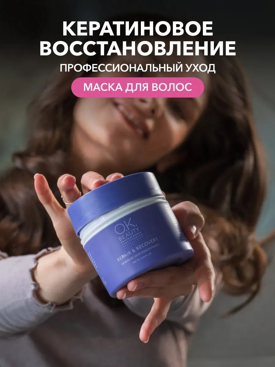 OK Beauty Repair & Recovery Intensive Nourishing Keratin Mask visibly restores dry, damaged hair after just one use. Professional hair care at home! The conditioner mask provides maximum nourishment and restoration for even the most damaged hair. Professional keratin care: replaces hair conditioner, provides excellent results against hair loss by reducing hair breakage. Properties: - SOS treatment for even the most damaged hair - Easily rinses out, does not weigh hair down and does not leave a greasy film - Keratin penetrates deep into the hair structure, restoring and moisturizing it from the inside - Moisturizes and strengthens - Suitable for all hair types: straight, wavy, curly, porous, thin and even colored hair - restores bleached hair along the entire length. Ideal for blondes. - The perfect hair growth product: helps maintain perfect length and volume while growing out, and works great against split ends. Result: - Deeply moisturizes and strengthens hair shafts. - Restores damaged hair after coloring, highlighting, straightening, and perming. - Makes hair thick and elastic. - Protects against breakage, hair loss, and heat damage. - Prevents frizz. - Facilitates styling without the need for additional professional styling products. - Makes hair manageable, shiny, and silky. Ideal as a cosmetic gift for yourself and your loved ones for any occasion! Any girl or woman will appreciate such a gift! Women's care cosmetics OK Beauty. Day, silk