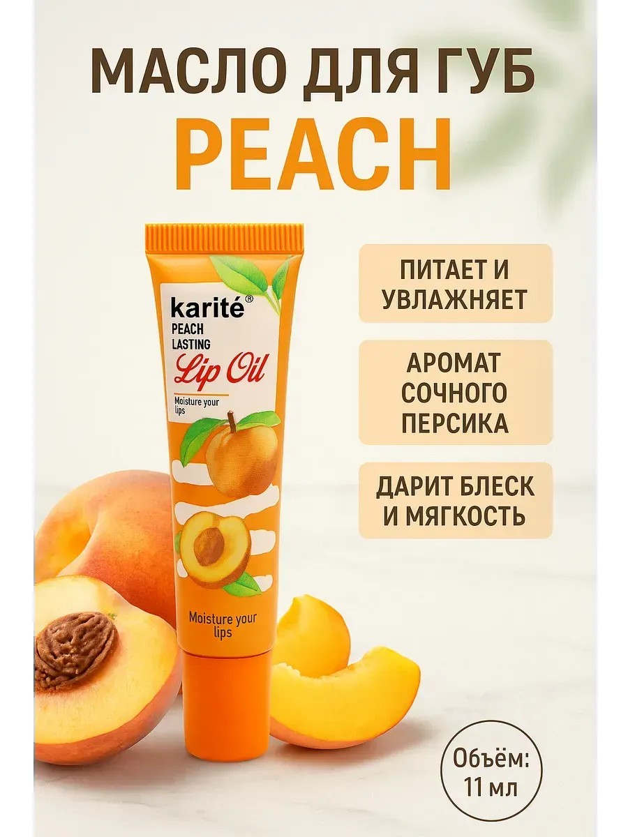 Масло для губ Karite Peach совмещает уходовые свойства и лёгкий декоративный эффект, делая губы мягкими, гладкими и сияющими. Средство подходит для женщин и мужчин, которые ценят комфорт и качественный уход.