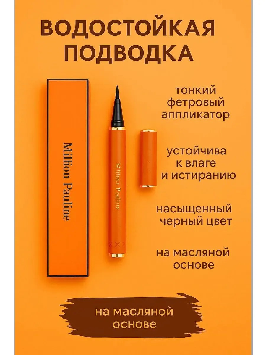 Главное преимущество подводки — её водостойкость. Она сохраняет стойкость даже при высокой влажности, в дождливую погоду или в течение долгого дня, не смазывается и не отпечатывается на веках. Тонкий аппликатор позволяет легко регулировать толщину линии: от тончайших стрелок до насыщенного графичного макияжа. Подходит как для начинающих, так и для профессионалов.