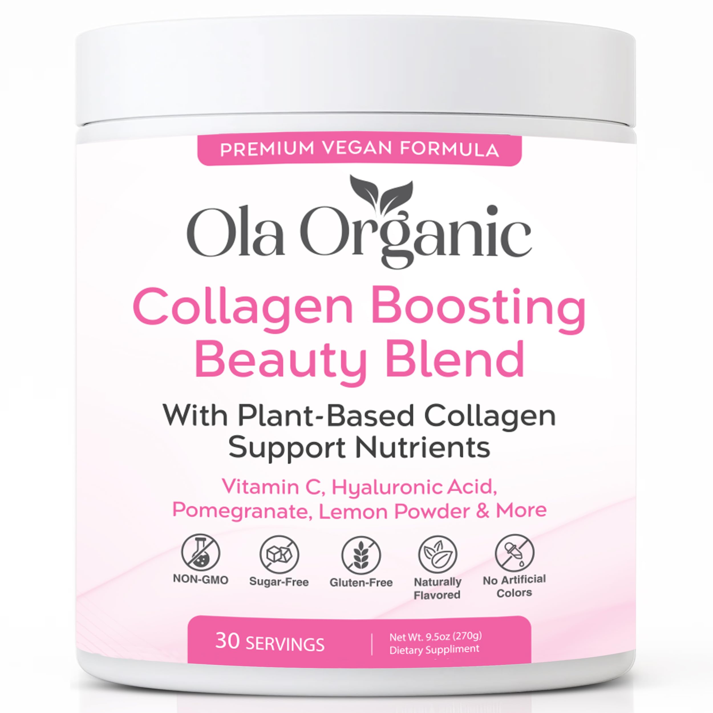 Ola Organic Collagen Booster Powder is designed to support the body's natural collagen production, helping maintain skin elasticity, hair strength, nail growth, and joint flexibility. Collagen is a vital structural protein, and this premium formula provides nutrients that help sustain overall health and vitality. Enriched with hyaluronic acid, Ola Organic Collagen Booster Powder supports hydration and helps maintain a youthful, revitalized appearance. With a clean ingredient profile, this formula is free from GMOs, gluten, and soy, ensuring purity and quality you can trust. Packaged in a convenient 300g resealable jar, this powder blends easily into smoothies, shakes, or recipes—making it simple to add collagen support to your daily routine. Support your wellness naturally with Ola Organic Collagen Booster Powder — a premium supplement formulated to help you feel and look your best every day