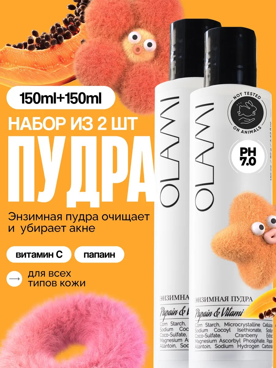 Энзимная пудра Olami - это средство для комплексного ухода за лицом и телом. Энзимный пилинг не только очищает от излишков себума и ороговевших клеток, но и стимулирует процесс регенерации кожи, повышая ее упругость и эластичность. Косметическое средство объемом 150 мл отбеливает и выравнивает тон кожи, борется с пигментацией и черными точками. Кукурузный крахмал дает матирующий и осветляющий эффект фотошопа - без жирного блеска, а также борется с возрастными изменениями. Экстракт клюквы усиливает усвоение кислорода, уменьшает вредное воздействие внешней среды, оказывает антикуперозное действие. Энзимы папайи помогают бережному очищению и удалению вросших волос после воска или депиляции даже в интимной зоне. Товар также можно использовать как пилинг для головы, смешивая с шампунем. Папаин, витамин С и аллантоин – активные ингредиенты в составе светлой пудры без талька. Они помогают вернуть тусклой коже сияние, очищают поры и нормализуют выработку кожного сала. Профессиональная рассыпчатая матовая пудра деликатно удаляет загрязнения и остатки макияжа, предотвращая образование прыщей и угрей.