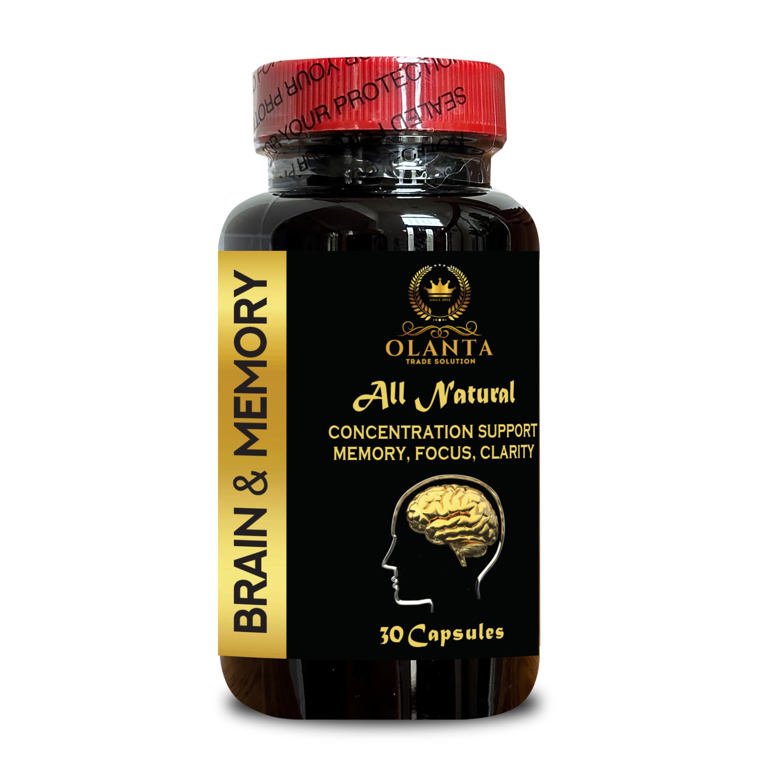 OLANTA TRADE SOLUTION Brain Memory Support - Mental Performance Vitamins Brain Supplements for Memory and Focus Clarity and Energy Gingko Biloba Supports Brain Health - 1 Bottle 30 Capsules.