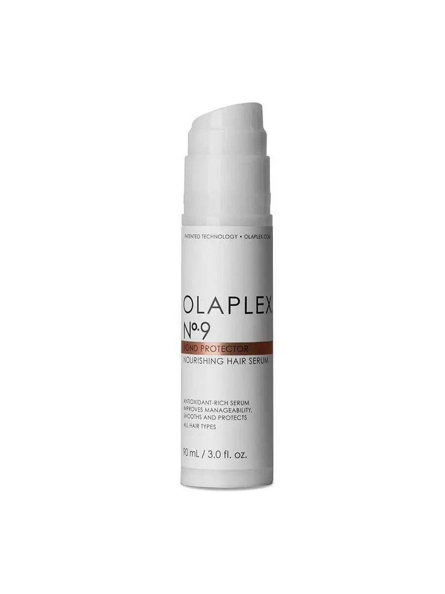 Inspired by revolutionary hair care technologies, Olaplex introduces its first-ever hair serum that protects and balances your locks. Olaplex No. 9 Bond Protector Nourishing Hair Serum is a silicone-free treatment for dry and damaged hair. It helps enhance shine and replenish lost moisture. Powered by Bond Building Technology and red algae extract, this serum creates a weightless, nourishing veil while providing heat protection up to 450°F (232°C). Infused with antioxidants, Olaplex gives hair a glossy, satin shine, leaves it soft to the touch, and enhances flexibility and elasticity. How to use: As the first step in styling, apply a small amount of Olaplex serum to damp, clean hair, working from ends to roots. Then, style. Do not rinse. Ingredients: Water (Aqua/Eau), Propanediol, Betaine, Quaternium-22, Sodium Hyaluronate, Bis-Aminopropyl Diglycol Dimaleate, Cetrimonium Chloride, Panthenol, Hydroxyethylcellulose, PVP, Guar Hydroxypropyltrimonium Chloride, Furcellaria Lumbricalis Extract, Pelvetia Canaliculata Extract, Xylitylglucoside, Polyquaternium-44, Anhydroxylitol, Maltitol, Citric Acid, Trisodium Ethylenediamine Disuccinate, Xylitol, Sorbic Acid, Phenoxyethanol, Ethylhexylglycerin, Sodium Benzoate, Fragrance (Parfum), Citral, Citronellol, Hexyl Cinnamal, Limonene, Linalool.