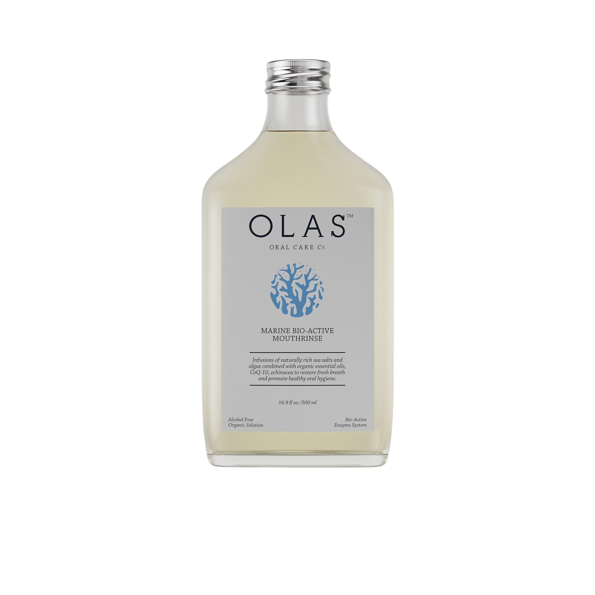 We designed this alcohol free mouth wash for adults who want a refreshing, fluoride free mouthwash they can use to take care of their teeth, gums and general mouth care. Our tooth and gum health mouthwash is formulated with a rich blend of naturally sourced sea salts, marine collagen, and antioxidant CoQ10. The non alcohol mouthwash can help strengthen your oral immune system, promote healthy gums, and freshen breath. The tooth and gum mouthwash uses a marine complex alongside organic essential oils, CoQ-10, and echinacea to help support a healthy oral environment, and gently freshen breath without drying out your mouth. The carefully selected essential oils in this zero alcohol mouthwash include tea tree, chamomile, myrrh, and grapefruit seed. We also use mineral rich sea salts so that this can remain a nourishing mouth wash for gums and sensitive mouthes, as sea salts won't irritate the delicate skin inside the mouth the way that alcohol-based mouthwashes do. Ultimately, we chose to create this no alcohol mouthwash because we believe a balanced mouth creates better conditions for oral care. This is also why our brand draws key ingredients from the ocean, where the natural ecosystem mimics our own bodies.Vegan Cruelty-Free - OLAS is doctor-founded, and all of our formulas are proudly made with responsibly sourced ingredients. This oral rinse mouthwash is no exception, and free of artificial colors and fragrances, parabens, sulfates, and other harmful additives. Convenient Travel Size - Perfect for travel or quick, natural fresh breath on-the-go, our 1 oz OLAS mouth wash packs the same bio-active power in a convenient, compact size. Essential Oils Sea Salt - Our SLS-free mouthwashes use organic, mineral-rich sea salts to temporarily change your mouth's pH environment and make it less hospitable to harmful bacteria. Carefully selected essential oils also help reduce plaque to leave your mouth clean, protected and feeling fresh. Alcohol Fluoride Free - We designed this fluoride and alcohol free mouthwash for adults who want a clean formula that won't sting or burn. The refreshing oral rinse has a sweet mint flavor with hints of thyme, chamomile, cypress and menthol. Innovative Marine Complex - This dentist-formulated mouthwash uses blue-green algae and seaweed extract to provide nourishing marine collagen, calcium and magnesium to your teeth and gums. These ingredients help our mouth rinse support your oral beauty without drying out your mouth.