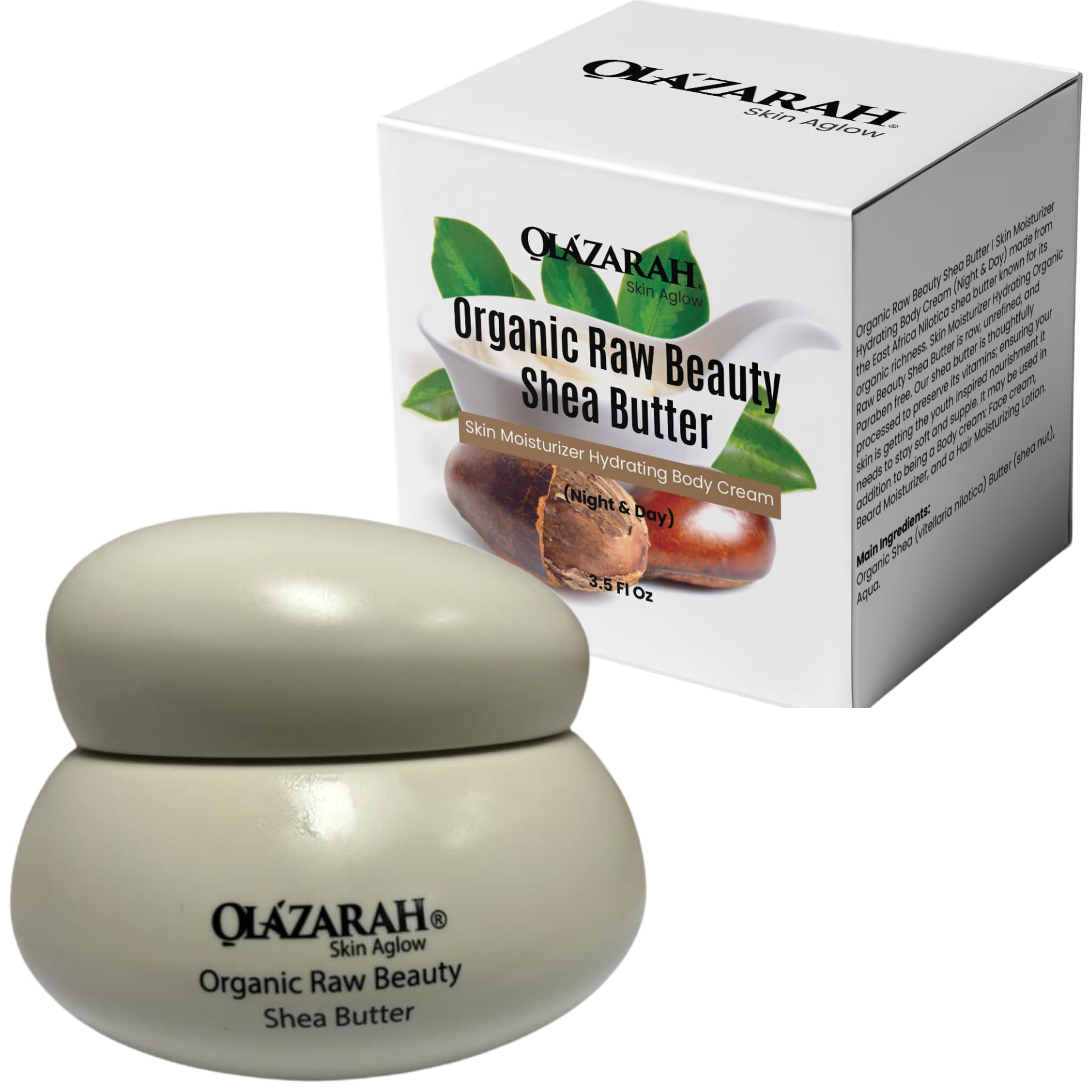 OLAZARAH Organic Shea Butter Cream: Nourishing Skin Hydration for Day & Night for All Skin Types 3.5 oz