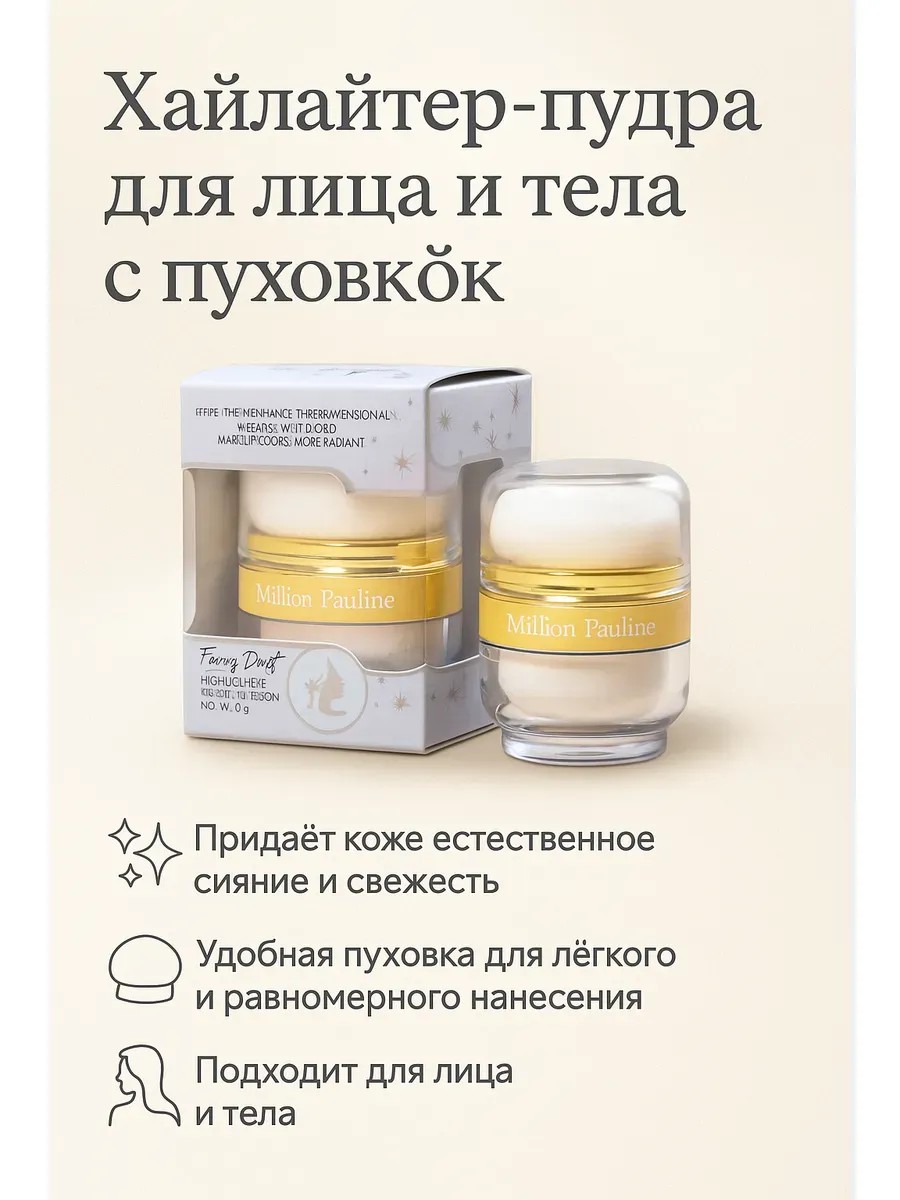 Рассыпчатый хайлайтер с пуховкой — сияние кожи для лица и тела