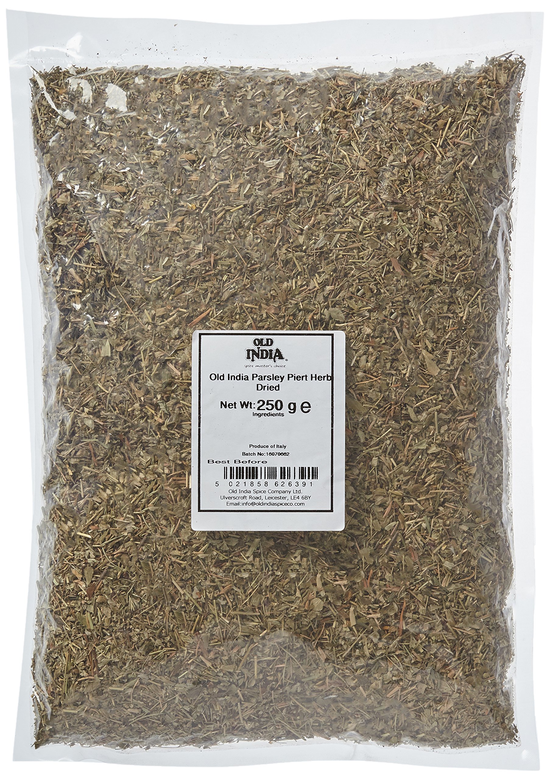 Parsley piert is a tiny plant that can be easily overlooked in its wild habitat, as it grows only to around four inches high. It is no relation to true parsley, but its leaves look similar. It is a close relation to Lady's Mantle, hence the name Lady's Field Mantle, and is a member of the Rosaceae or rose family of plants. INGREDIENTS Parsley Piert Herb BOX CONTAINS Each order comes with 1 x Old India Parsley Piert Herb Dried 250 g See more