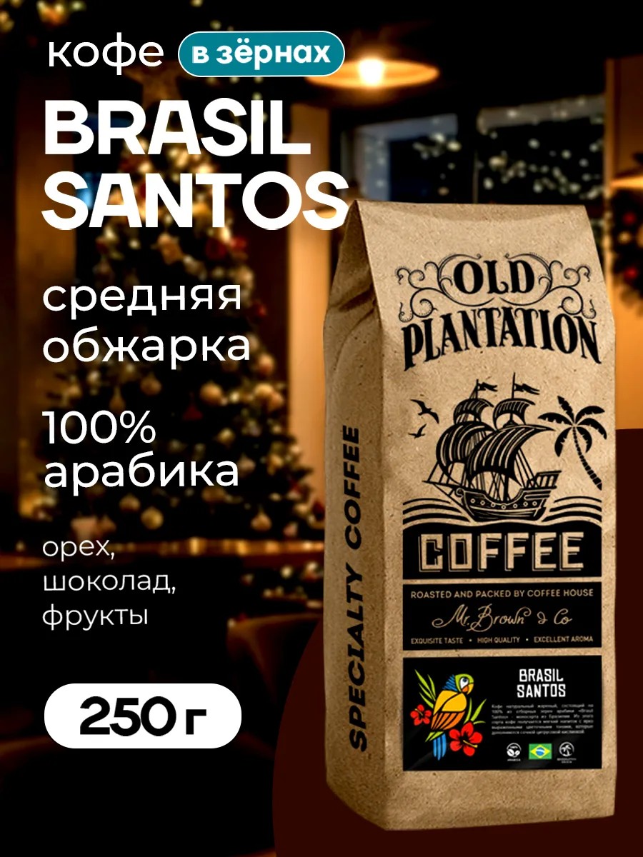 Кофе в зернах Old Plantation Бразилия Сантос — насыщенный вкус в крафтовой упаковке 250 г