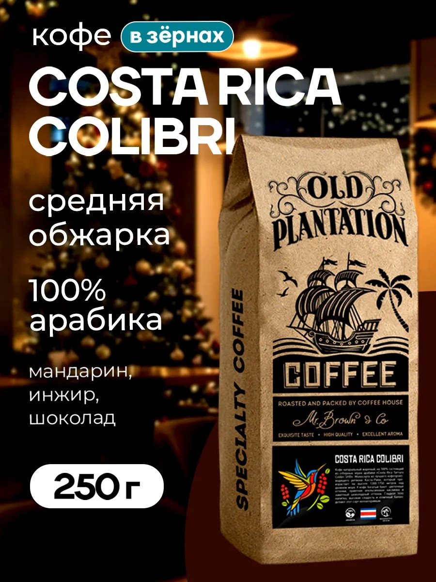 Кофе в зернах Old Plantation Costa Rica Colibri — тропическая гармония в крафтовой упаковке 250 г