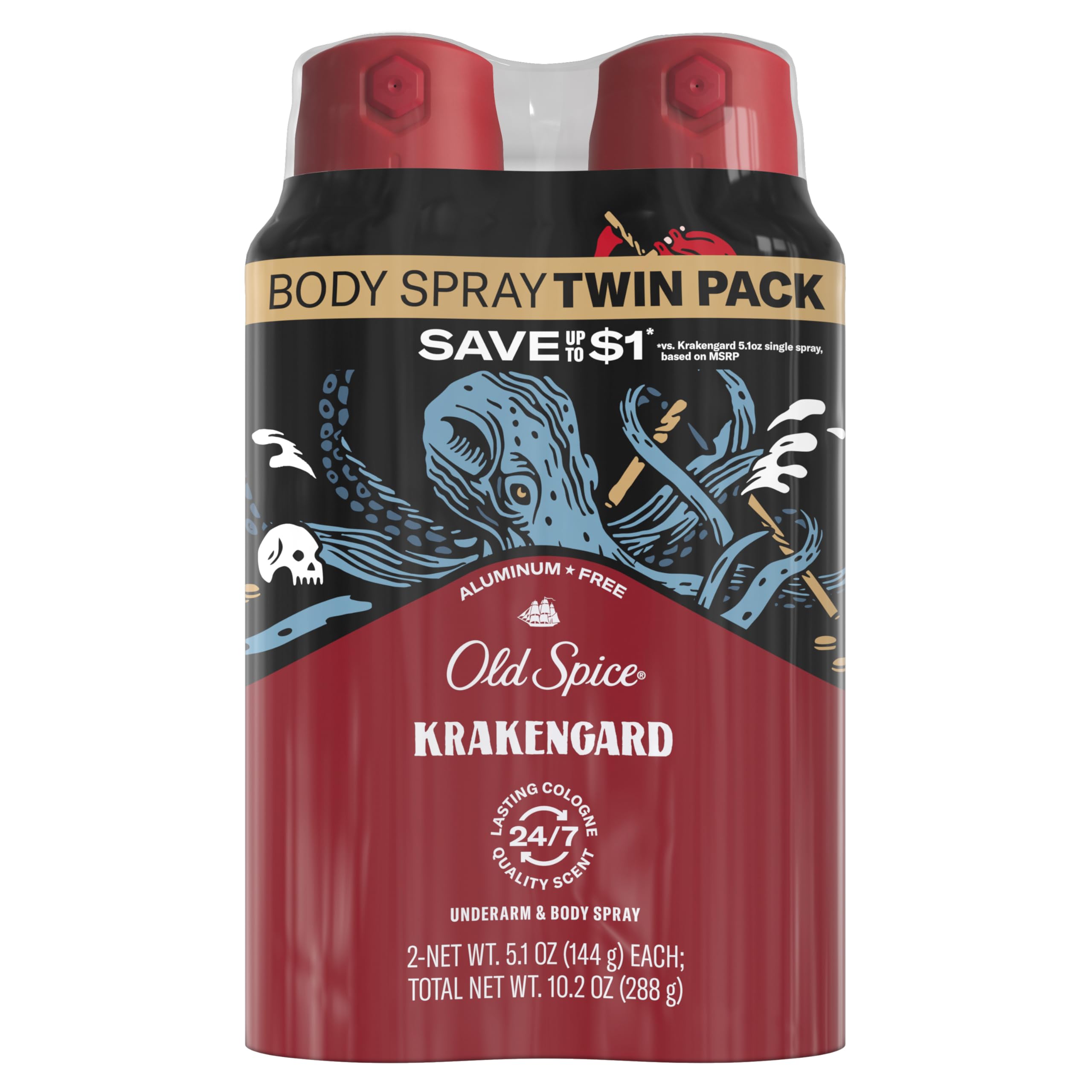 Old Spice Aluminum Free Body Spray for Men Krakengard 5.1 Oz (Pack of 2) 5.1 Ounce (Pack of 2)