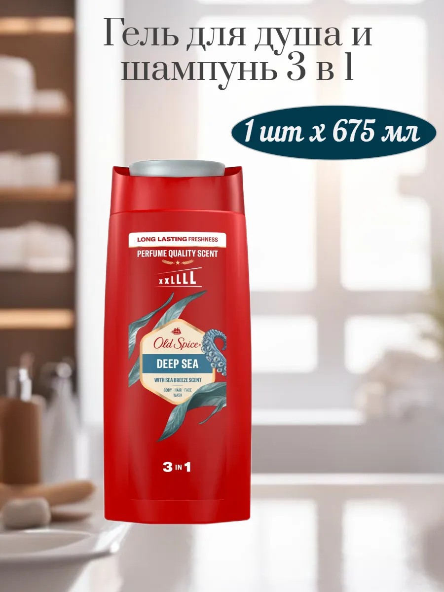 Гели для душа + шампунь от Old Spice - технология усиленной защиты от запаха пота на 12 часов. Средство 3 в 1 для лица, тела и волос может выполнять роль геля для душа, шампуня и средства для умывания. Содержит увлажняющие компоненты, смывает бактерии, не содержит парабенов. Гели для душа для мужчин обладают топовыми ароматами. Линейка Deep sea обладает ароматом морского бриза, лимонов и жаркого лета.