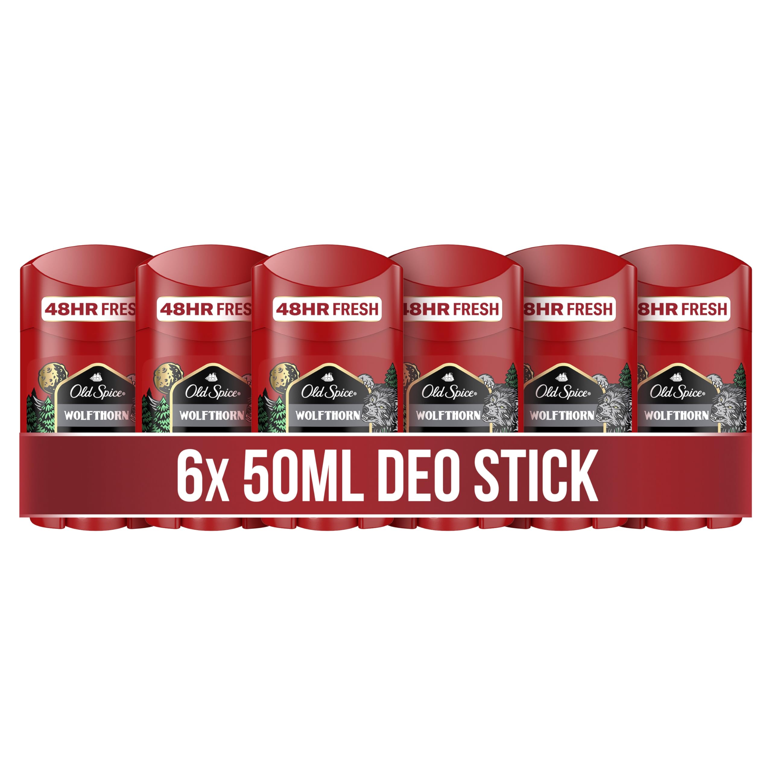 Men, feel good. Old Spice helps tame the stench of masculinity with superb deodorant sticks. These keep you smelling great all day long, with a mantasic, high-quality fragrance that suits every man. They offer 48-hour freshness, are aluminum-free, and won't leave white or yellow marks on black or white clothing. Try the Wolf Horn fragrance as an Old Spice scent. The fresh scent of wild lemons, tropical fruits, juicy mandarin, and a hint of vanilla unleashes your inner wild side. Ahoi! HOW TO USE Apply the deodorant stick directly to the skin and leave no chance for perspiration odors.RECYCLE ME: The packaging is made from 50 recycled plastic. Saving the world from body odor is just the beginning. How to use: Apply the stick deodorant directly to the skin and leave no chance for perspiration odors. 0 aluminum salts. No stains: Invisible freshness! Old Spice stick deodorant leaves no marks on white or black clothing. Long-lasting, high-quality fragrances: The fresh scent of wild lemons, tropical fruits, juicy mandarin, and a hint of vanilla unleashes your inner wild side. Enjoy 48 hours of freshness: Thanks to body odor-fighting technology and long-lasting fragrances.Old Spice Wolfthorn Lot de 6 déodorants en stick pour homme, 50 ml, fraîcheur 48 h, parfum longue durée, 0 sels d'aluminium, pas de taches sur le noir et blanc, fabriqué à partir de 50 de Lot de 6 tubes de 50 mlDESCRIPTION DU PRODUIT DESCRIPTION DU PRODUIT Homme, sentez-vous bien. Old Spice aide à contrôler les hommes à travers les eaux de la virilité avec de superbes bâtonnets déodorants. Ceux-ci vous font sentir bon tout au long de la journée, avec un parfum mantastique de qualité qui convient à tous les hommes. Ils offrent une fraîcheur 48h, sont sans sels d'aluminium et ne laissent pas de traces blanches ou jaunes sur les vêtements noirs ou blancs. Testez le parfum Corne Loup en qualité de parfum Old Spice. Le parfum frais de citrons sauvages, de fruits tropicaux, de mandarine juteuse et d'une pincée de vanille libère le côté sauvage qui sommeille en vous. Ahoi! MODE D'EMPLOI Appliquez le déodorant en stick directement sur la peau et ne laisse aucune chance aux odeurs de transpirationRECYCLE MOI : l'emballage est fabriqué à partir de 50 de plastique recyclé. Sauver le monde des odeurs corporelles n'est que le début. Utilisation : appliquez le déodorant en stick directement sur la peau et ne laisse aucune chance aux odeurs de transpiration. 0 sels d'aluminium. Pas de taches : fraîcheur invisible ! Le déodorant en stick Old Spice ne laisse pas de traces sur les vêtements blancs ou noirs. Des parfums durables de qualité parfumée : le parfum frais de citrons sauvages, de fruits tropicaux, de mandarine juteuse et d'une pincée de vanille libère le côté sauvage qui sommeille en vous. Profitez de 48 heures de fraîcheur : grâce à la technologie anti-odeurs corporelles et aux parfums longue durée.