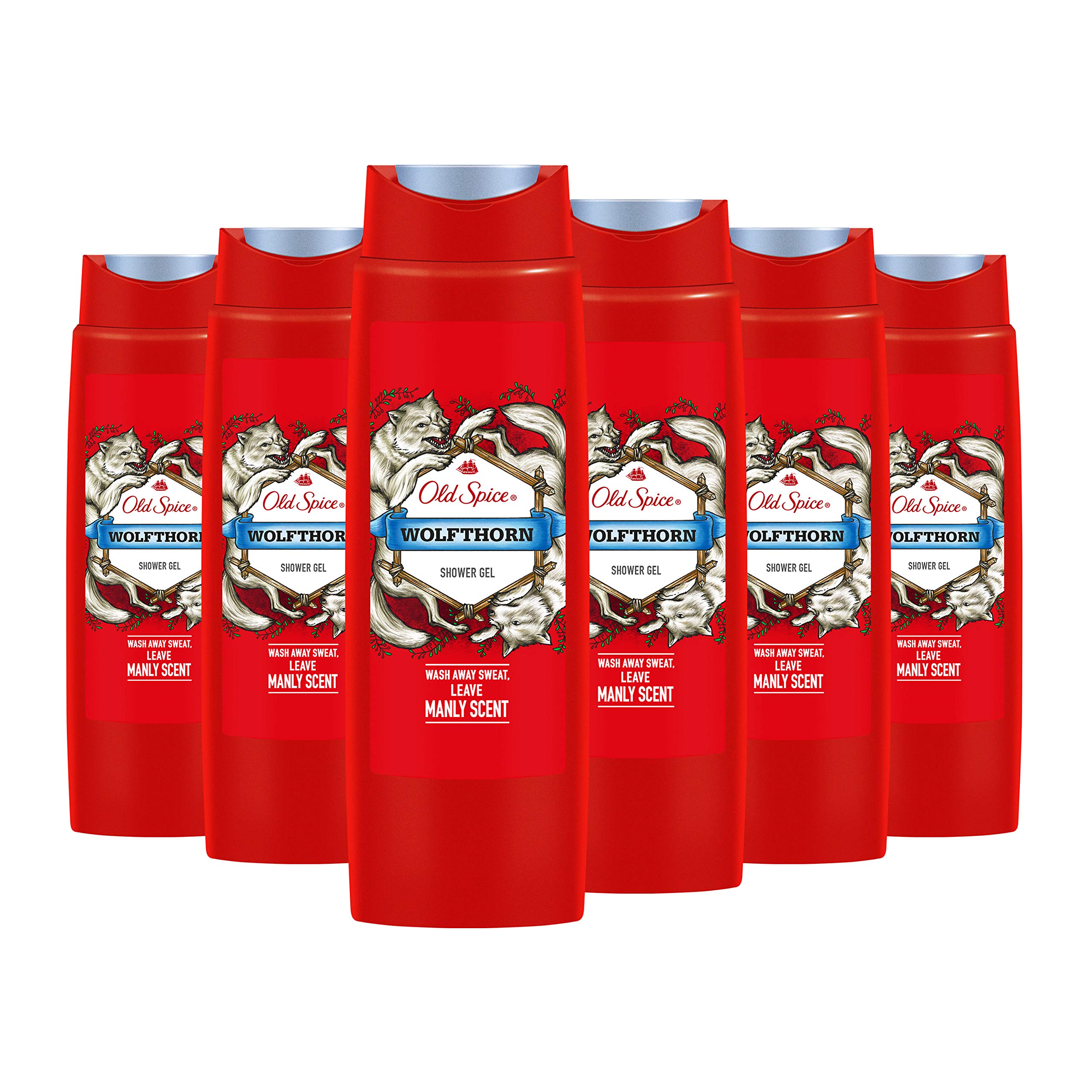 Old Spice Wolfthorn Lot de 6 flacons de gel douche et shampoing pour homme 3 en 1 Parfum longue durée 250 ml