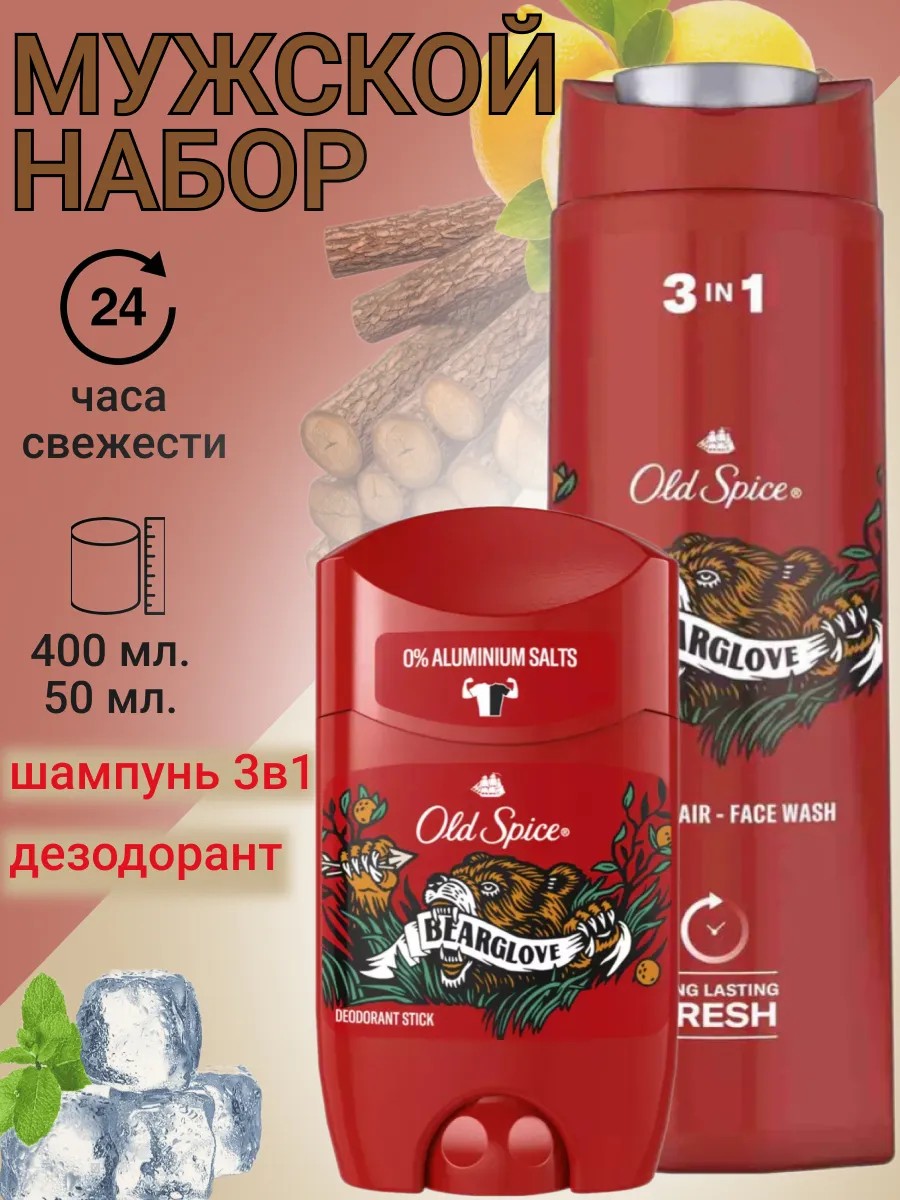 Old Spice Набор "Bearglove" Гель-шампунь, 400мл+дезодорант стик, 50мл