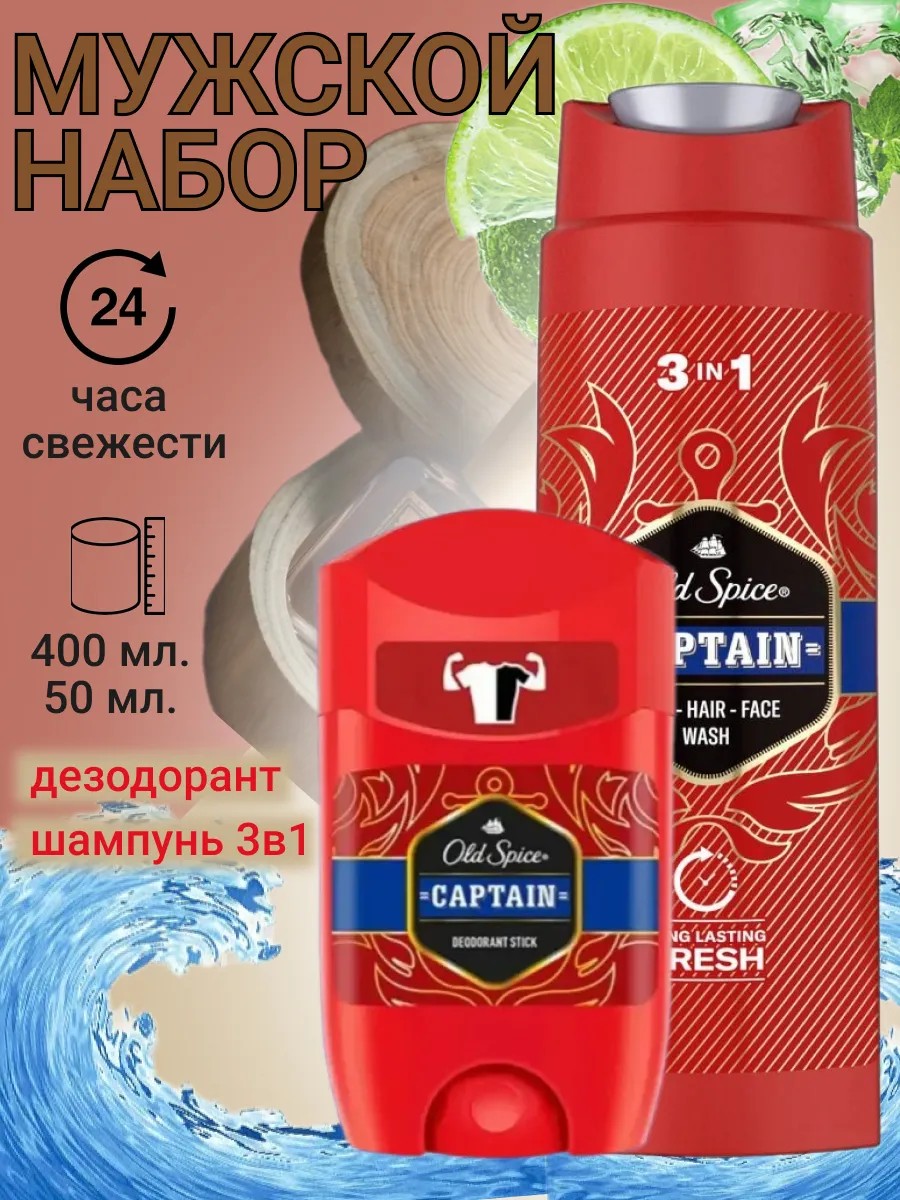 Old Spice Набор "Captain" Гель-шампунь, 400 мл+дезодорант стик, 50 мл