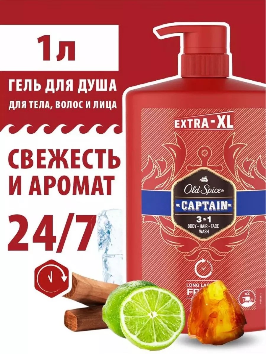 Представь, что мир, который ты жаждешь покорить, – это устрица. Так вот, мужской гель для душа Old Spice (Олд Спайс) Captain 3в1 (для тела, волос и лица) – это нож, который поможет раскрыть створки ее раковины, секретное оружие, которое не знает неудач. Даже когда ты не покоряешь открытые моря, ты покоряешь помещения, наполняя их свежим чистым ароматом цитруса, сандалового дерева, соленых брызг океана и попутного ветра. Хочешь, чтобы твоя эскадра побеждала по всем фронтам? Проще простого – надо просто найти именно свой аромат! Освежающая пена геля для душа и шампуня Old Spice в extra-XL упаковке 1 л борется с неприятными запахами, наполняя тебя капитанской решительностью, смелостью и отвагой с чистыми зелеными нотами цитрусовых. Зарядись энергией и мощью Old Spice с самого утра – попробуй гель для душа+шампунь 3в1 Captain, затем нанеси дезодорант из этой же коллекции (стик или спрей), чтобы потопить неприятный запах пота. Преимущества: - Гель для душа+шампунь 3в1 - для тех, у кого есть тело, волосы и лицо; - До 100 дней свежести; - Грязь и запах смывает, мужичайший аромат и свежесть оставляет; - Динамичный яркий аромат, который будет с тобой весь день