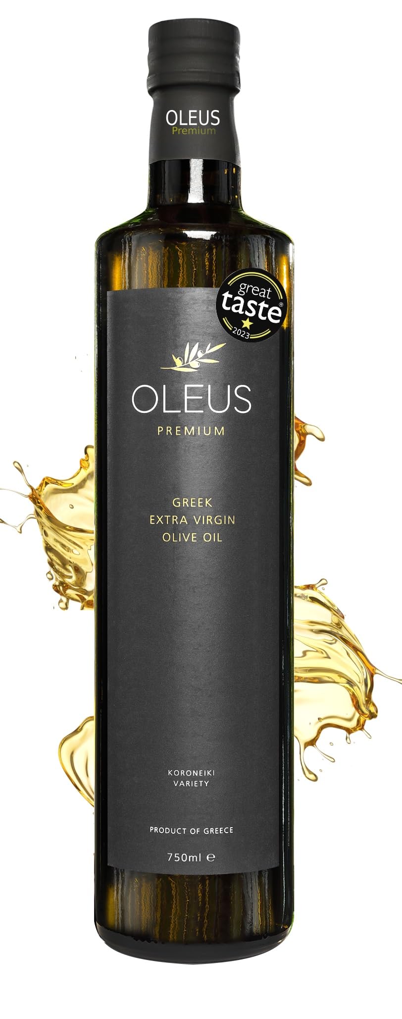 OLEUS PREMIUM Premium quality olive oil - Cold pressed | Greece | For cooking/roasting | Extra Virgin | Olives | Mild fruity | 100% Koroneiki olives | Messinia | Gift | 750 ml glass bottle