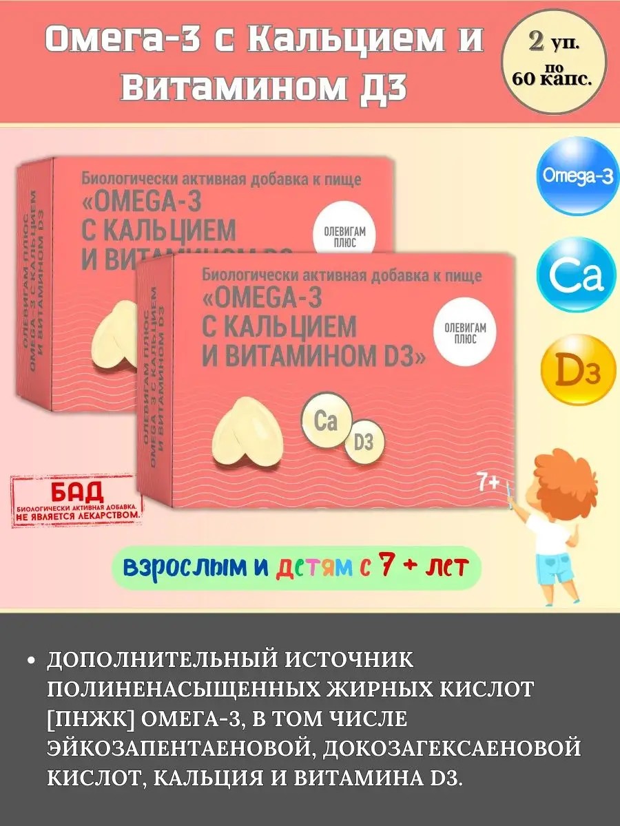Олевигам Омега3 Кальций и ВитаминД3 60капс.х2уп.